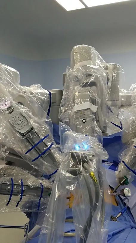 4月30日,经过完善的术前评估和准备,严超、毕任达等医生为丁先生实施了手术。摒弃了传统间质瘤手术,从外朝内切除肿瘤的方式。为了应对丁先生的特殊情况,医生讨论后决定,采用达芬奇机器人,将机械臂插入了他的胃部,由内而外切沿着胃壁,切除一枚4cm的肿瘤,最后在胃里进行缝合修复,漫长的手术历时7个小时,宣告圆满成功。