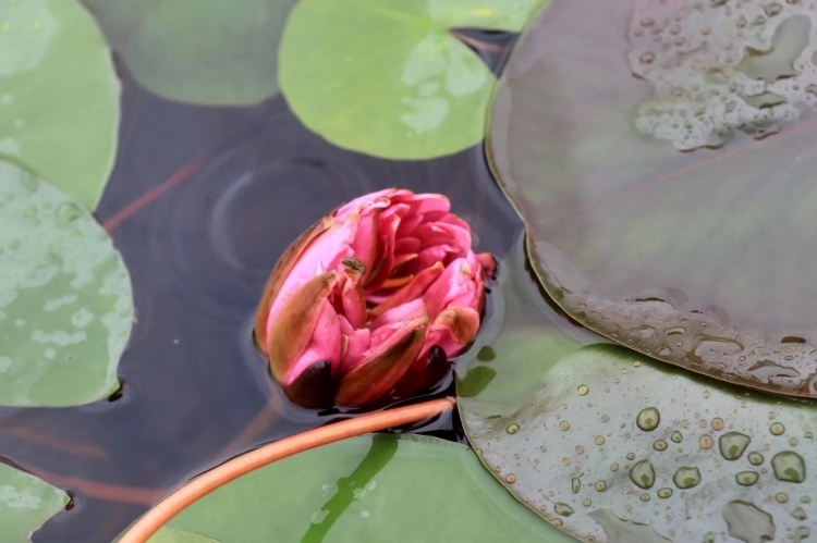 该“四蒂睡莲”是由花卉专家培育的优秀小型睡莲品种。在这朵“四蒂睡莲”旁,还蓄势待放着一朵多蒂睡莲,花苞仍呈聚合状,具体数目有待揭晓。