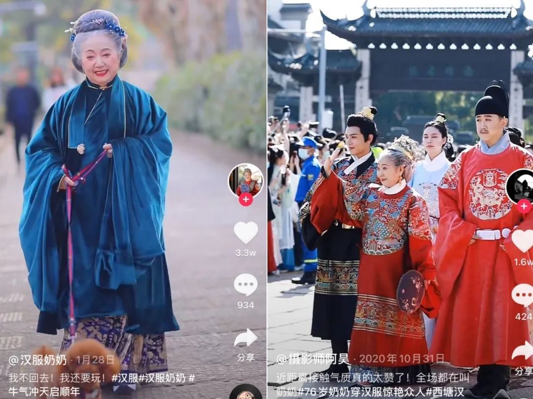 抖音@汉服奶奶、@摄影师阿昊