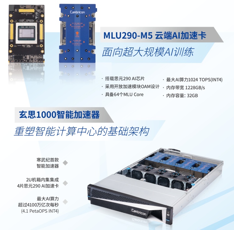 寒武纪思元290智能芯片及加速卡、玄思1000智能加速器