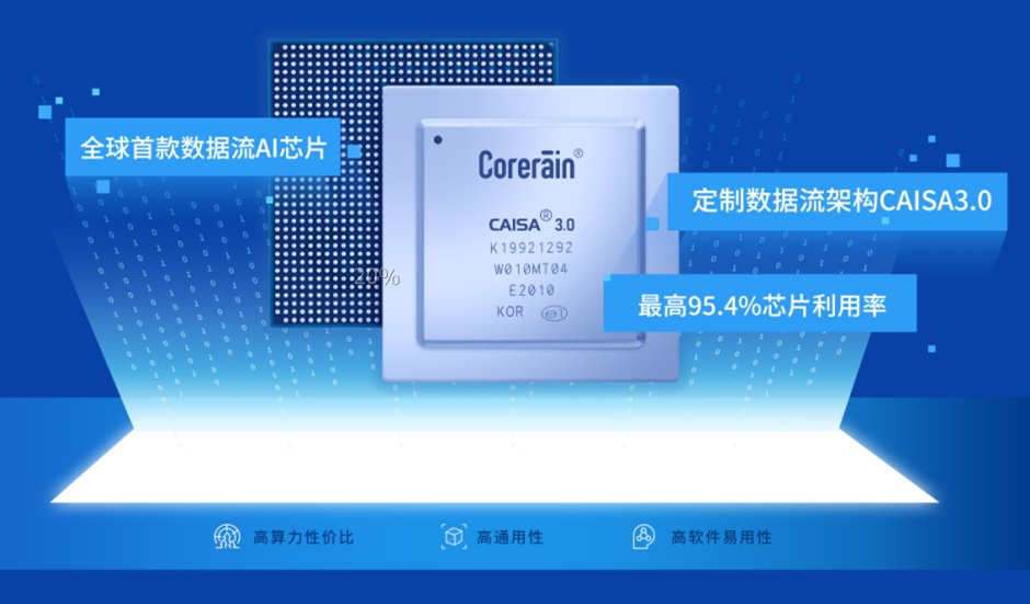 高性能数据流AI芯片CAISA是鲲云科技基于在人工智能定制数据流领域三十余年的技术积累,自主研发的专为人工智能图像提供高性能计算加速的AI芯片产品,率先在全球实现数据流AI技术的量产和商用化规模落地。CAISA基于自主研发的定制数据流架构,不同于传统的冯诺依曼的指令集架构,通过控制数据的流动次序来管理计算执行次序,大大提升了芯片的利用效率,在实测算力上实现了技术突破,最高可实现95.4%的芯片利用率,较同类产品提升11.6倍。同时,CAISA依托简单易用的RainBuilder编译工具链实现对主流框架和算法的通用支持,为客户提供最优算力性价比。CAISA芯片作为数据流AI芯片,通过底层架构创新实现了实测算力突破,为AI芯片研发和AI产业的发展探索了一条新的道路。