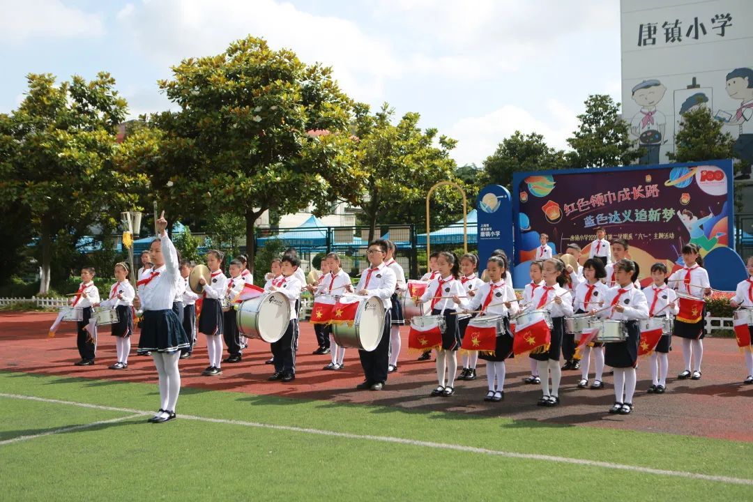 走在唐兴路、唐安路路口,一抬头就能看到“唐镇小学”和“达义明事理”几个褚红色的大字,欢快的笑声透过沿路围墙播撒开来。走进绿树成荫的校园,沿着“红领巾之路”走向主教学楼,蓝色系的北楼和黄色系的南楼既让人感受到冷暖色调对比的视觉冲击,又彼此形成一种呼应协调的“对话”。