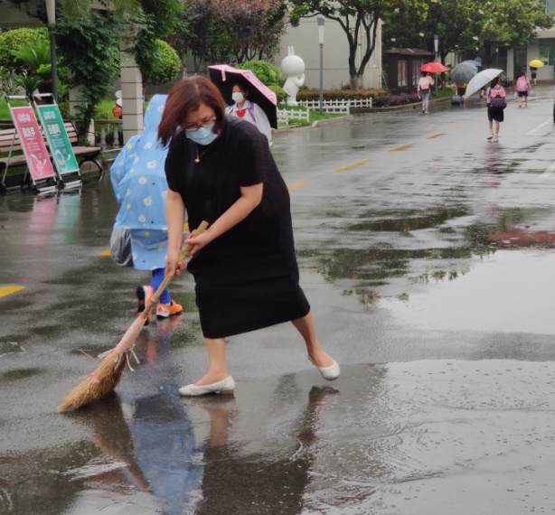2020年5月,新冠肺炎疫情后复学,娄华英每天七点多就守在校门口,大雨来袭,她抄起一把扫帚清扫积水,全身湿透只为学生不要弄湿鞋子;行政管理团队看在眼里,每天自发在7:30前集体到岗,有的老师怕没带伞的学生淋湿,抱起孩子一直送到教学楼的走廊里。“唐小的老师是真心对学生好!”家长们透过校门和围墙,看到这一幕幕,感动不已。