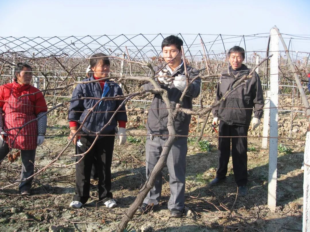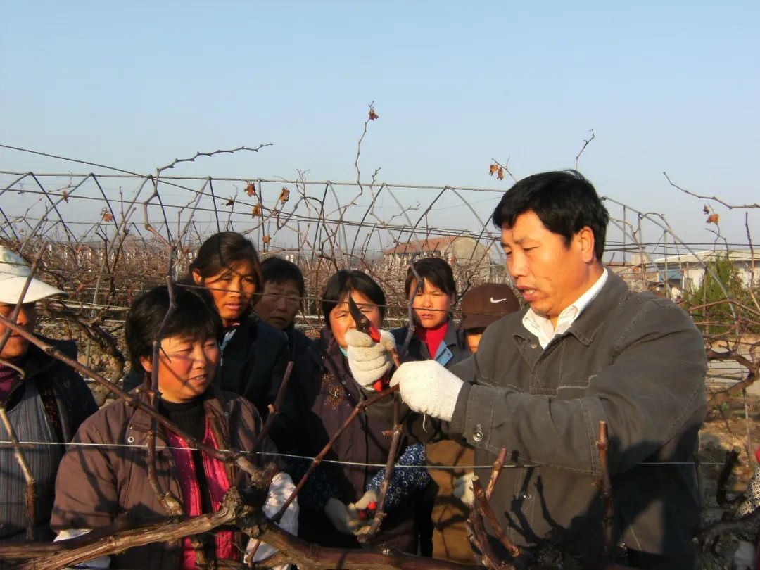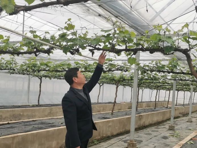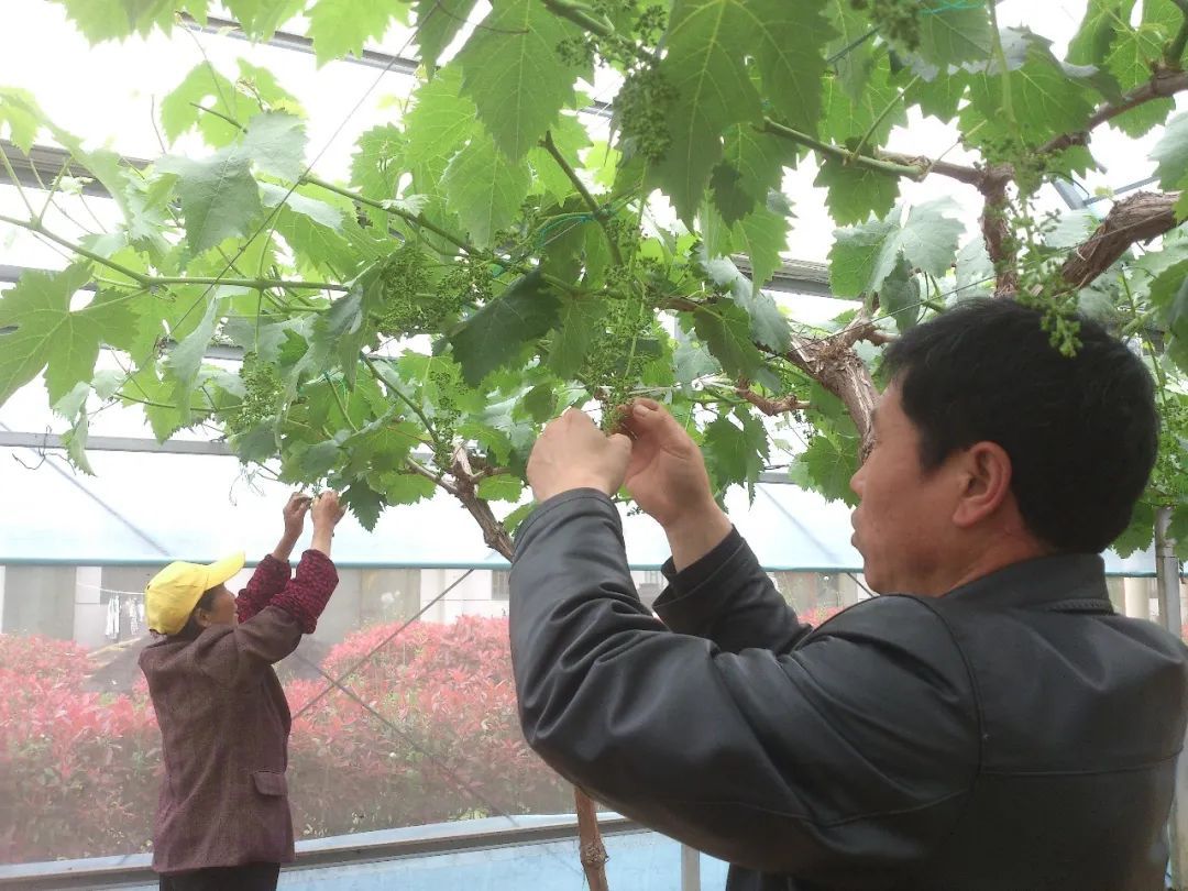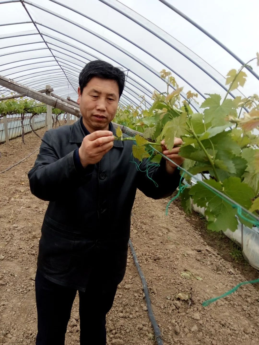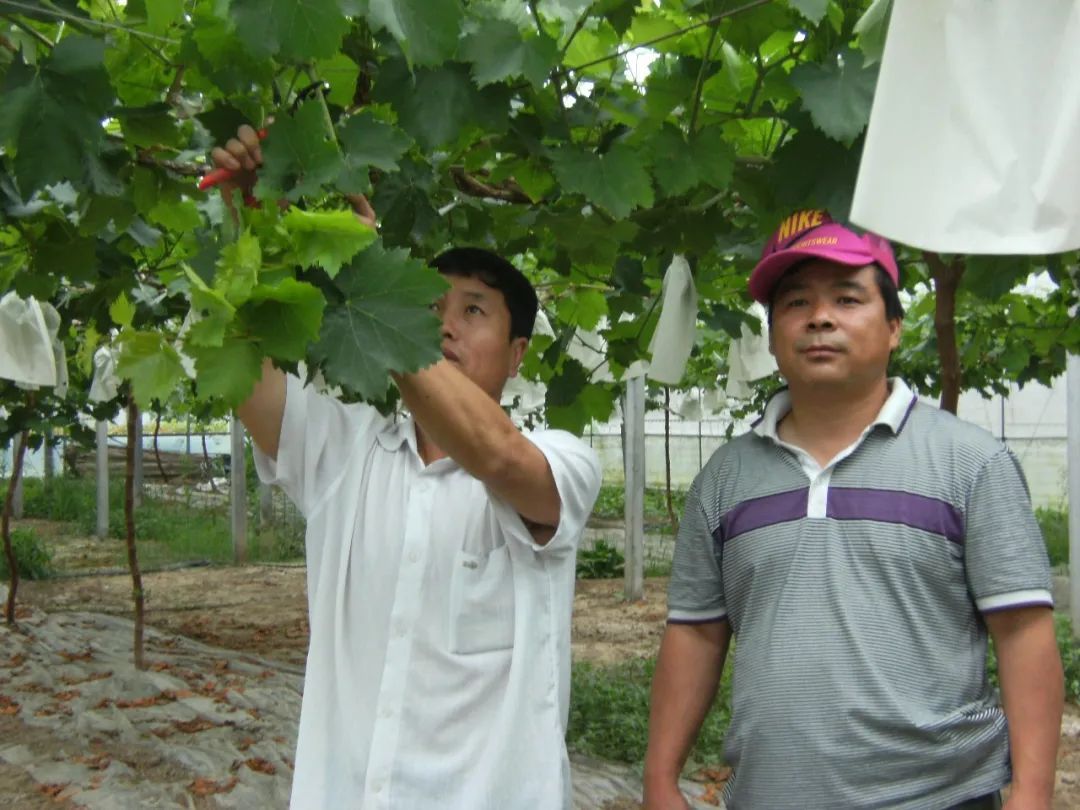 为了在技术上精益求精,针对生产中出现的技术问题,他积极进行探索和完善。比如,针对园区原有蔬菜大棚改种葡萄高度不足、空间小的问题,他大胆地提出将“龙”杆形栽培模式改为高杆“T”形斜棚架栽培模式,不但有效提高了葡萄品质,而且操作简单,管理方便,成为园区中管棚栽培的主要架形。
