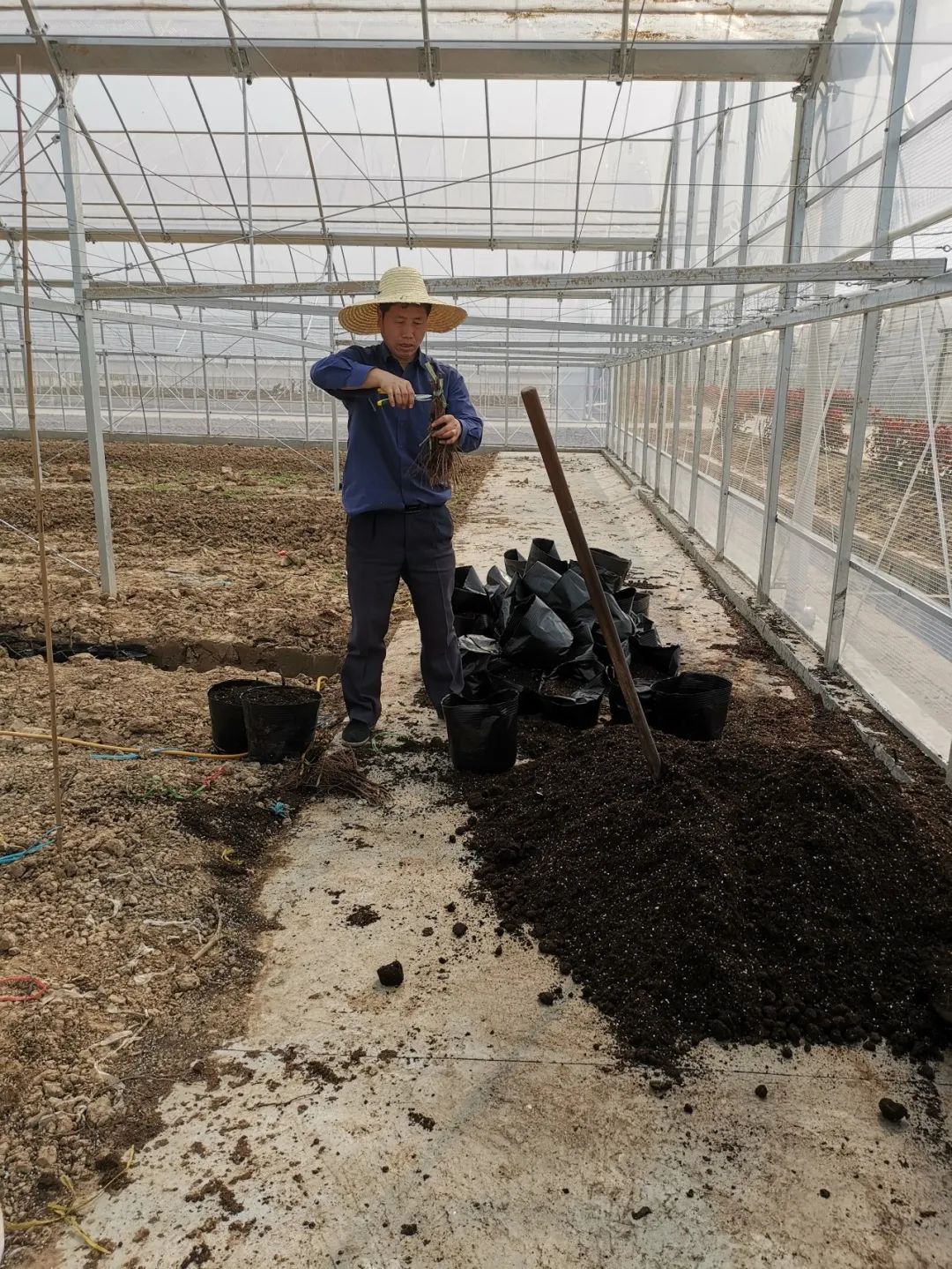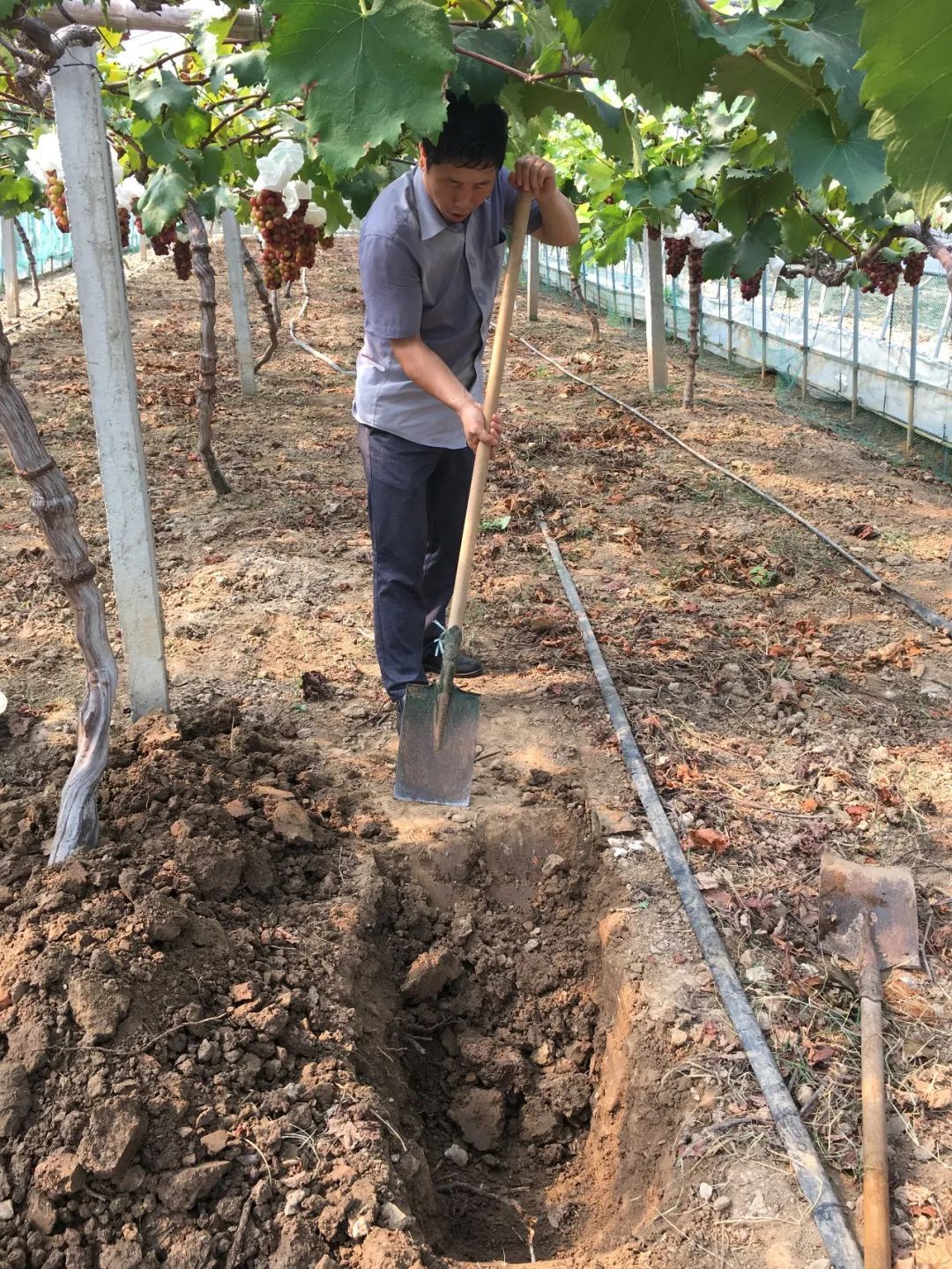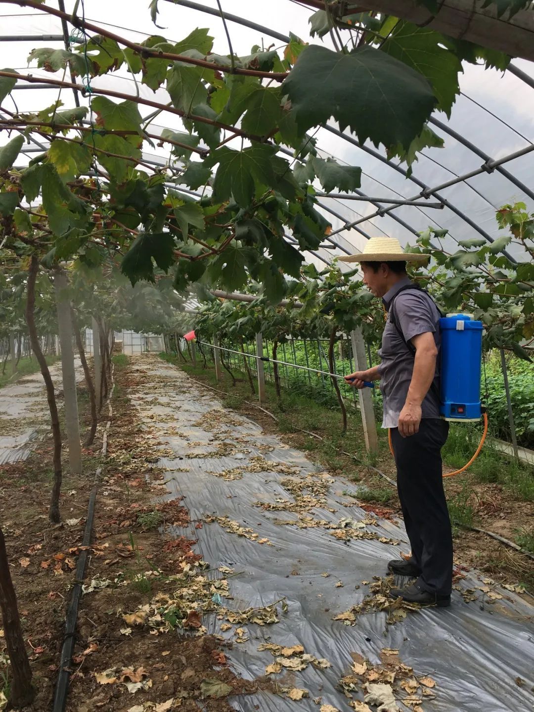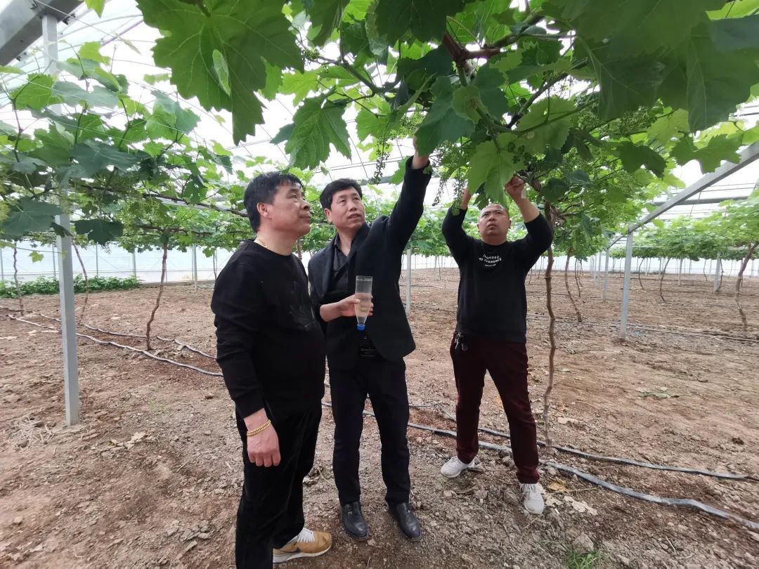 为了在技术上精益求精,针对生产中出现的技术问题,他积极进行探索和完善。比如,针对园区原有蔬菜大棚改种葡萄高度不足、空间小的问题,他大胆地提出将“龙”杆形栽培模式改为高杆“T”形斜棚架栽培模式,不但有效提高了葡萄品质,而且操作简单,管理方便,成为园区中管棚栽培的主要架形。