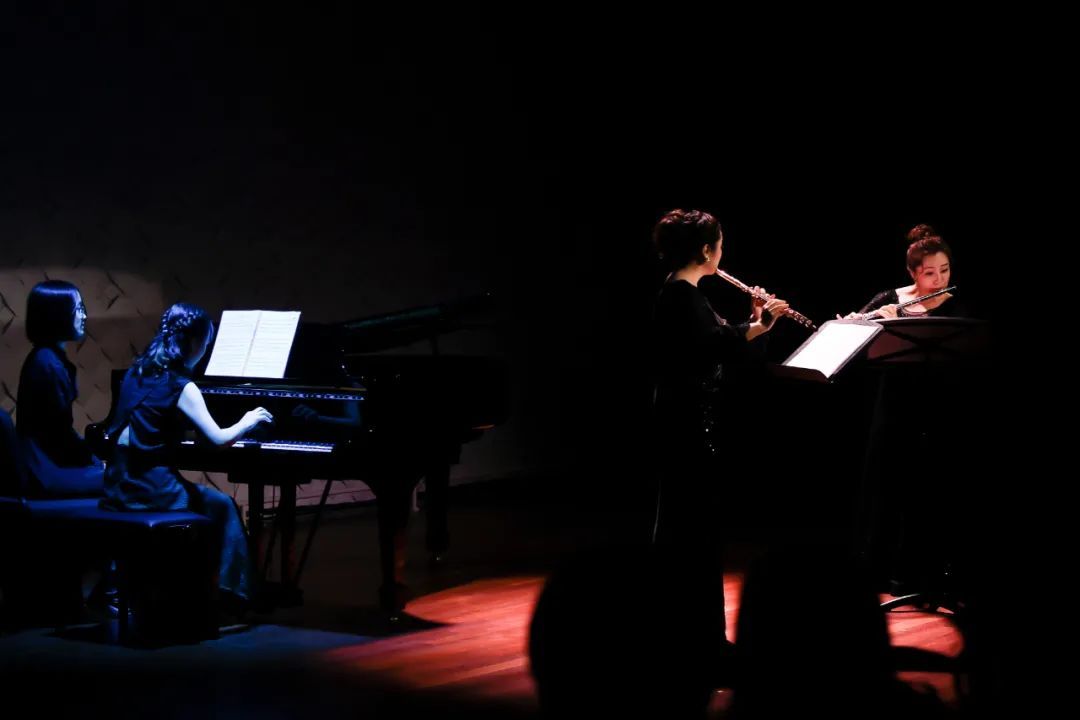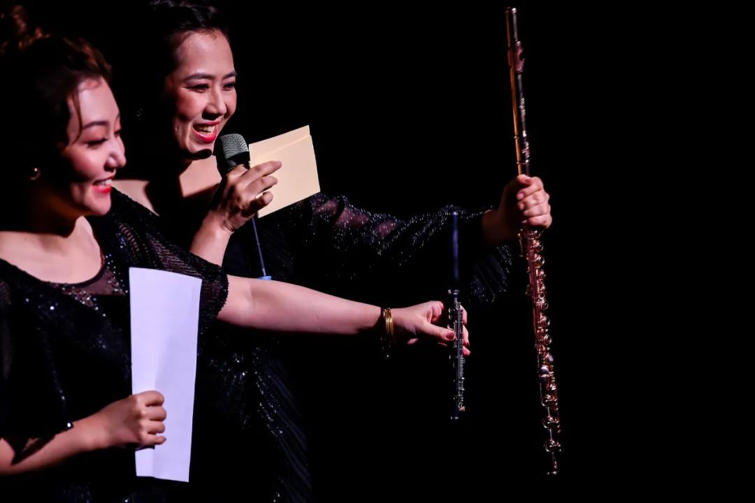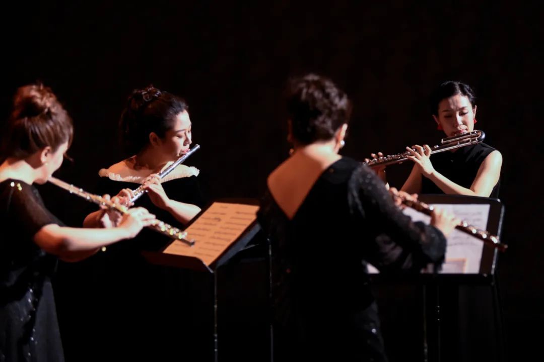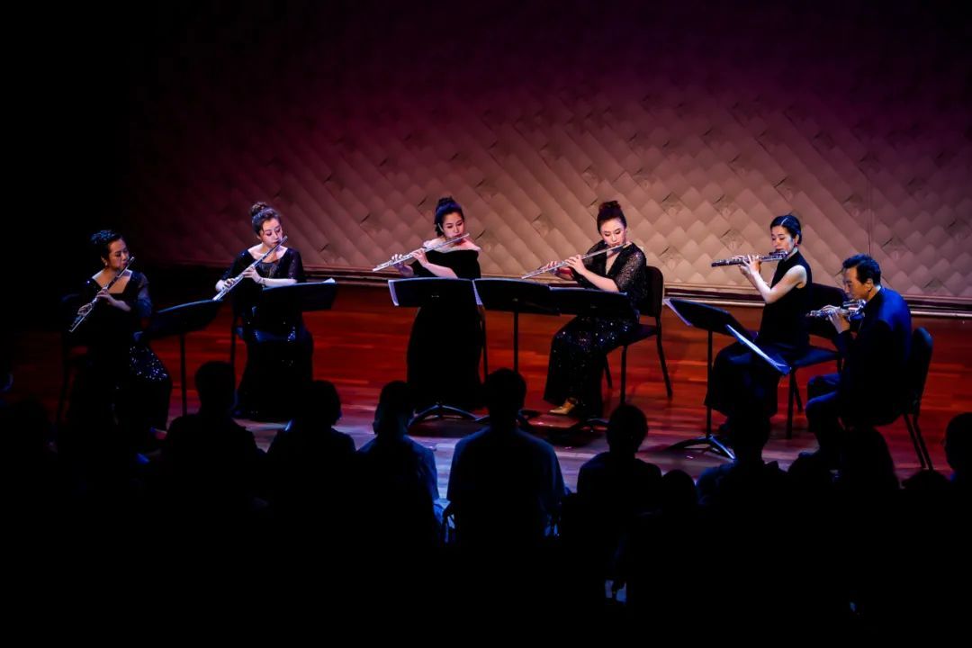 下半场开场,欧泊室内乐与特邀嘉宾长笛演奏家张小平、特邀长笛柴正共同带来了长笛六重奏《玛依拉舞曲》,欢快且富有节奏的旋律仿佛少女玛依拉灵动的歌声和舞姿。