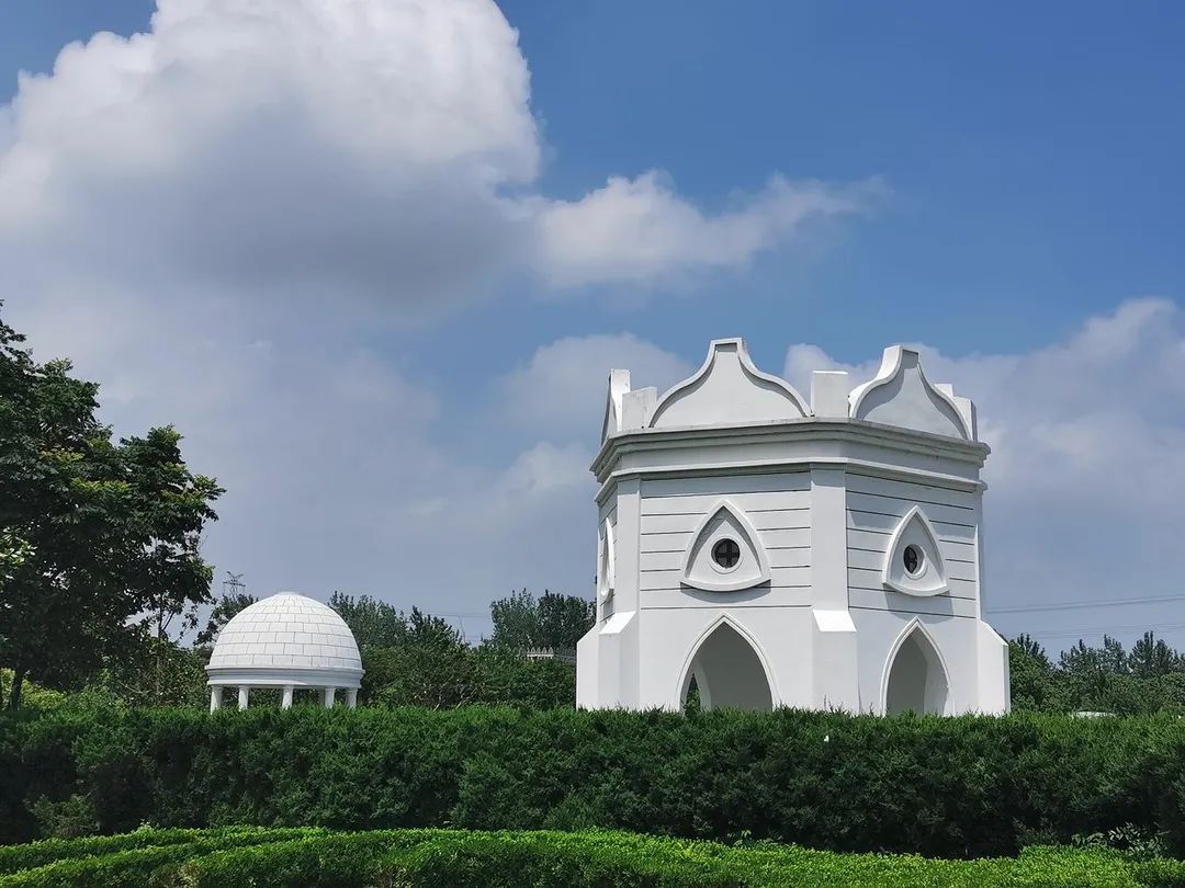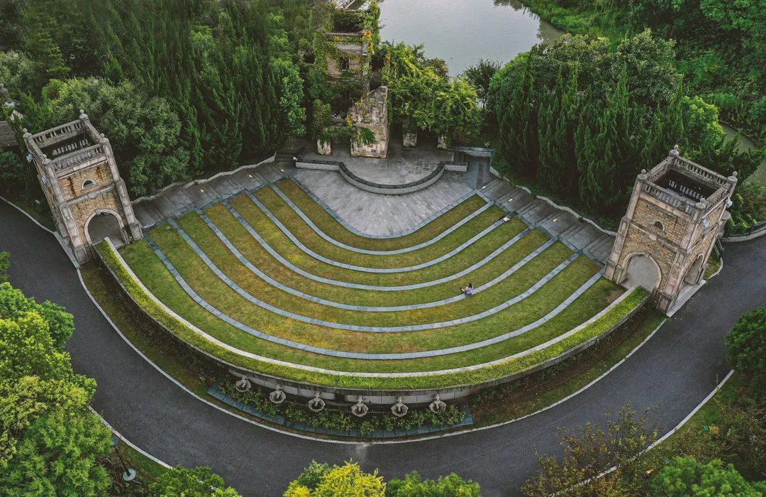 小众又好看的建筑背景,旋转楼梯、斑驳的建筑光斑、也能轻松拍出人像大片!还有希腊风的白色立柱点缀着葱葱郁郁的树木,每一处都展现着色块、 空间、想象力的碰撞之美!