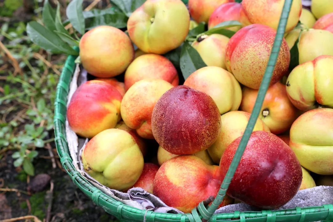 除了早黄桃,果园里还种植了水蜜桃。水蜜桃表皮青里泛白,白里透红。揭开薄薄的桃子皮,入口是软糯香甜的果肉,汁水浸满味蕾,果香十足!