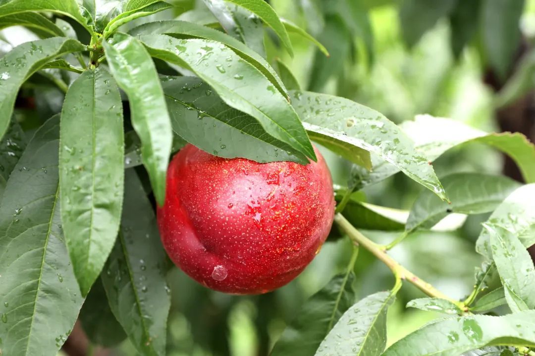 红艳艳的油桃也已成熟。刚从果树上摘下的油桃甜脆爽口,吃起来十分过瘾!