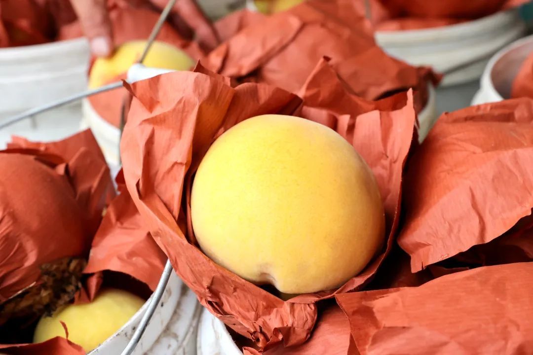 掰开油纸,只见藏在里面的“锦香”黄桃个头饱满,色泽金黄,表皮透出淡淡的粉。洗干净咬一口,唇齿留香。