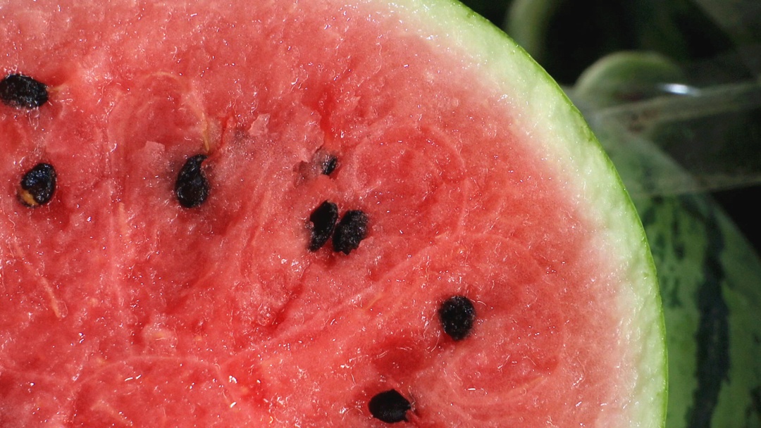 剖开瓜,籽都是黑色的、无空心、无硬块。吃一口,汁水充盈于口腔,果肉细嫩、纤维少、十分甘甜爽口。