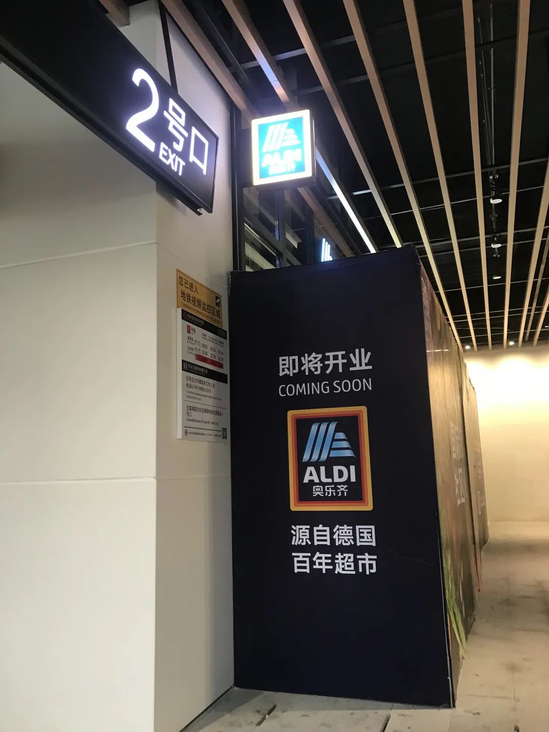 走进莲花路地铁站往莘庄方向2号出口站内,已有一家正在施工的“ALDI”奥乐齐超市即将开业。奥乐齐创立于1913年,是德国最大的连锁超市之一,其微信小程序商城也正式上线,提供店铺周围3公里快速配送服务。此外,站外一家咖啡店也将要营业,方便并满足了周边居民、公交乘客、办公族等。