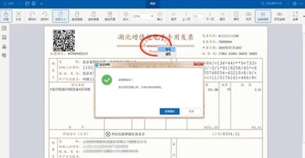 这里也可点击“二维码”或“发送邮件”功能,以多种方式进行电子发票版式文件交付。购买方扫描销售方提供的二维码或点击开票方发送的邮件中版式文件下载URL链接地址,进行预览、下载电子发票版式文件和验证签章。