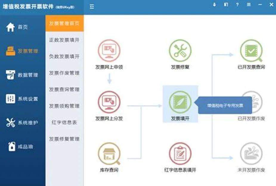 正数发票填开,选择【发票管理】-【发票管理首页】-【发票填开】-【增值税电子专用发票】。