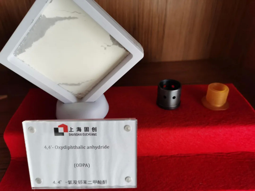 聚酰亚胺凭借优异的化学稳定性,超强的高低温物理机械性能已成为中国航空航天事业不可或缺的材料之一。作为中国聚酰亚胺单体化学品原材料的重要供应商,上海固创化工新材料有限公司生产的醚酐(ODPA)产品,做为主要原料,用于上海市合成树脂研究所YS20系列聚酰亚胺模塑料的生产,并最终应用于神舟飞船配套特种耐高温零部件,为神舟飞船的顺利研制和成功发射做出了突出贡献。