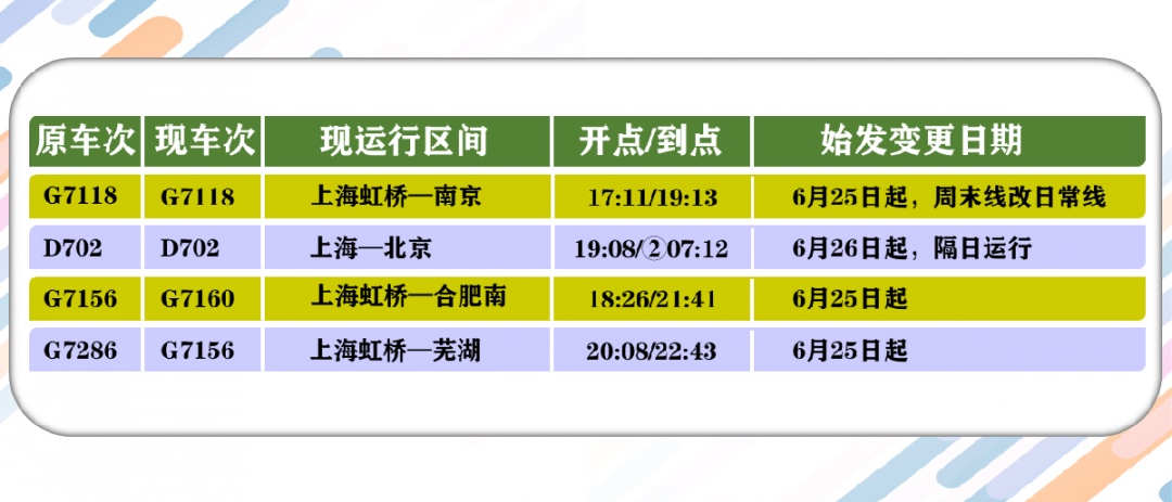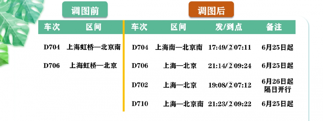 6.25图实施后,全站北京动卧4对,上海站3对,上海南站1对。