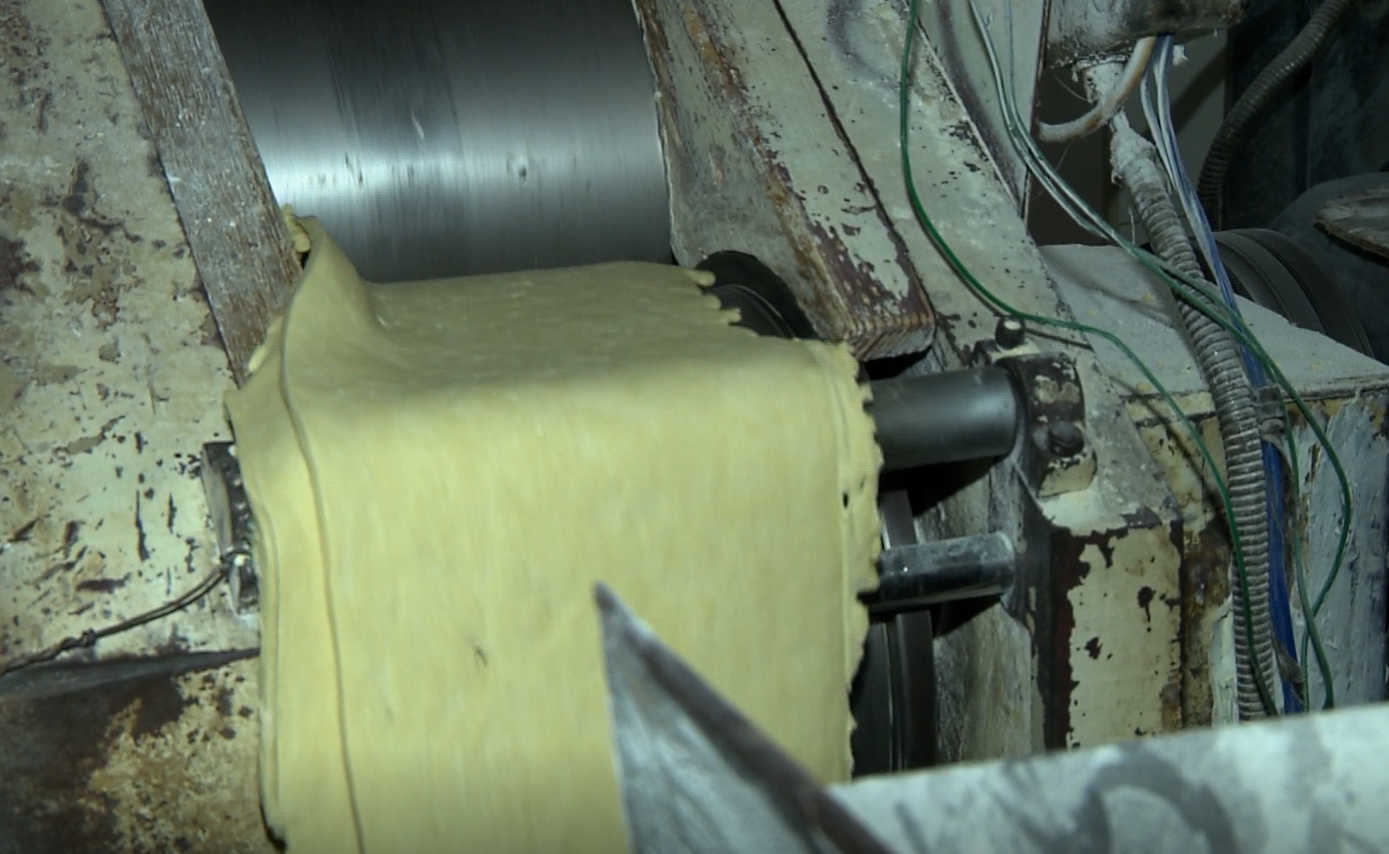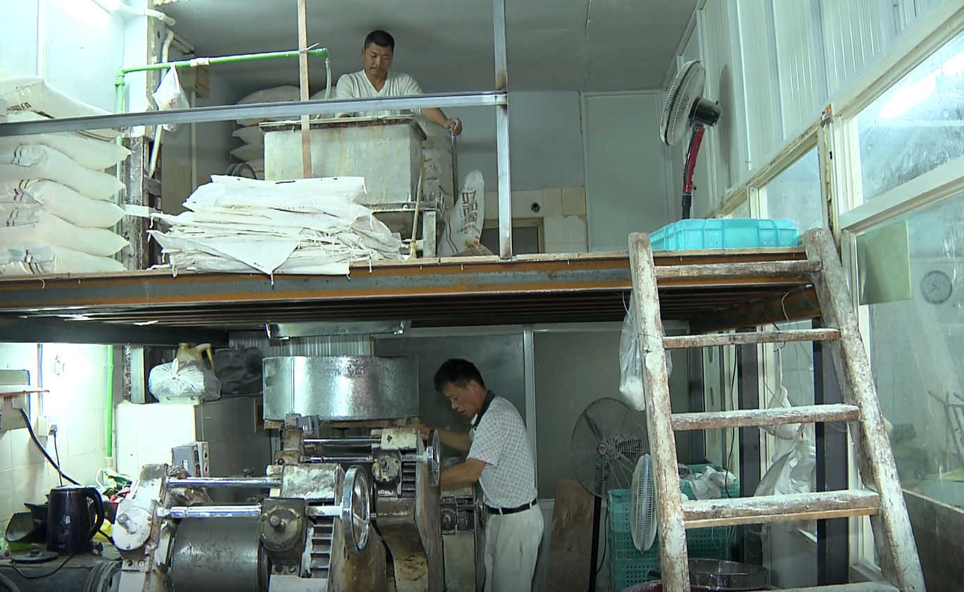 早上2、3点钟,孙师傅和伙计们就在巨鹿路上这间租赁下来的操作间里忙开了。和面、压面、制面,一道道工序就在这台使用了40多年的轧面机上完成。