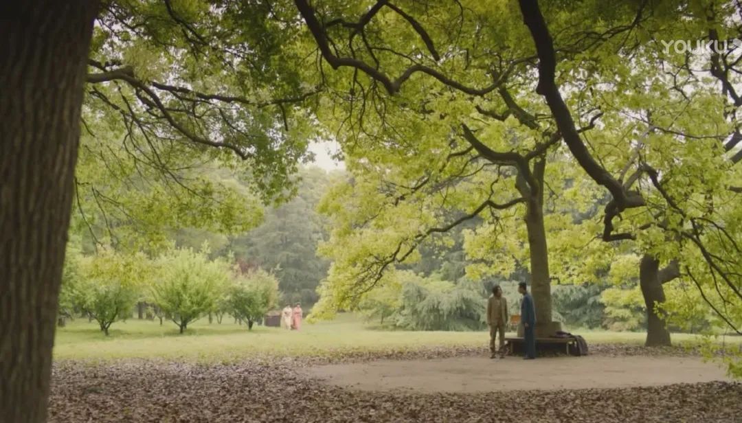 这一场景拍摄区域位于松涛幽谷西面,他们身后就是1700余株的雪松形成的一片蔚然壮观的雪松林带。夏日至此,呼吸清凉,热念俱消。登至高处,可饱览全园诸景,另有一番境界。