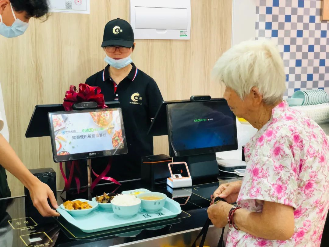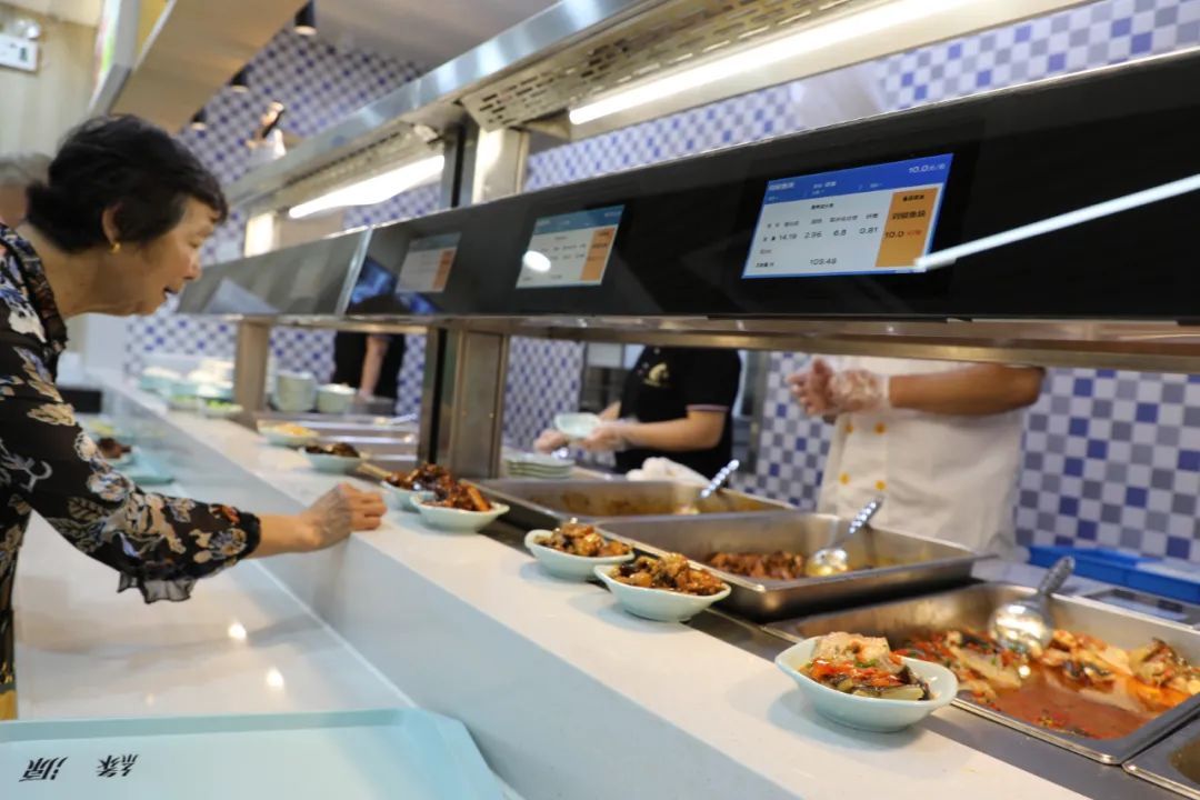 为了让老年人也能体会到科技带来的便捷,长者食堂选取了简单快捷的“智慧”就餐模式。根据营养价签屏选择菜品、结算区自动结账,每个环节老人都可以轻松参与,比在家里吃饭还要方便舒适。