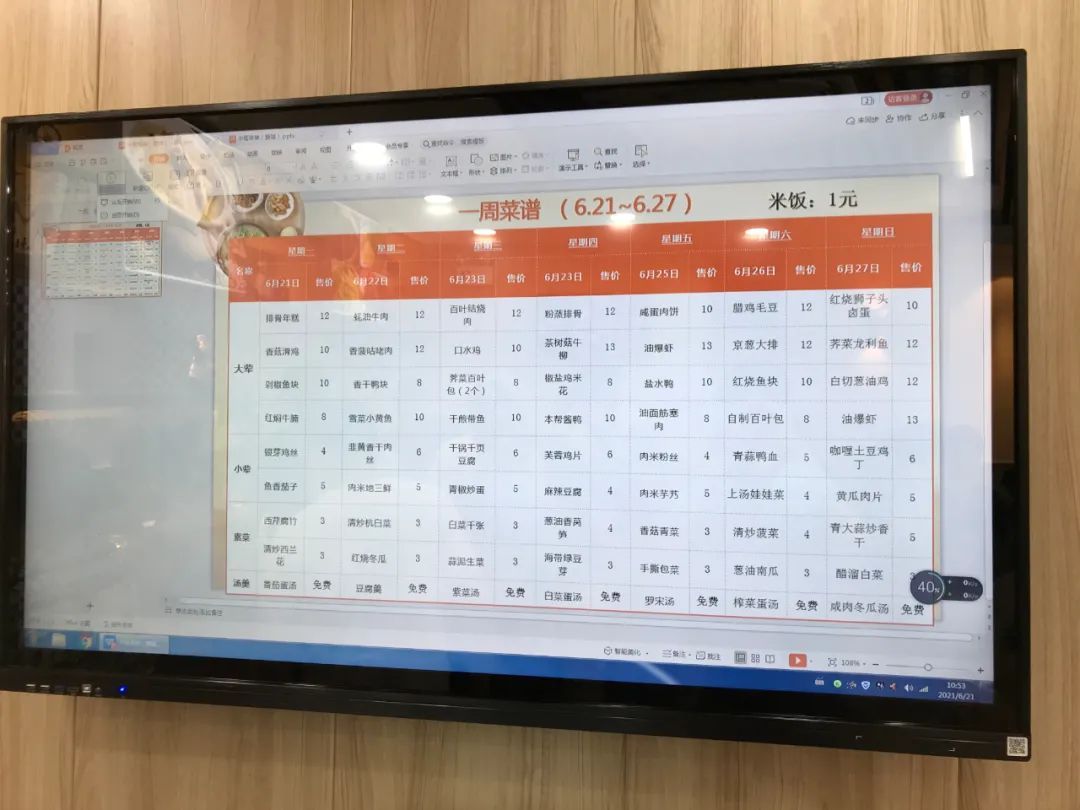 在爱博五村长者食堂的一侧电子屏上写着一周菜谱,每天供应8菜一汤,并且做到“一周不重样”,不仅荤素搭配还结合时令,让老人能吃到当季的新鲜菜品,“考虑到老人的牙口和口味,我们的菜吃口偏软、偏烂,鱼肉选刺少的龙利鱼这类,很少有辛辣口味的菜。”食堂运营方负责人表示。