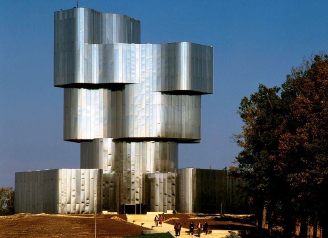 碑体建筑由钢筋混凝土制成,并覆盖着不锈钢板,充满穿越时代的未来感。内部楼梯回廊曲线丰富,很有识别性。1991年后,南斯拉夫内战期间,此纪念碑遭到严重破坏,大量不锈钢板被当地人盗取,现如今已沦为荒山里永世孤寂的人造物。