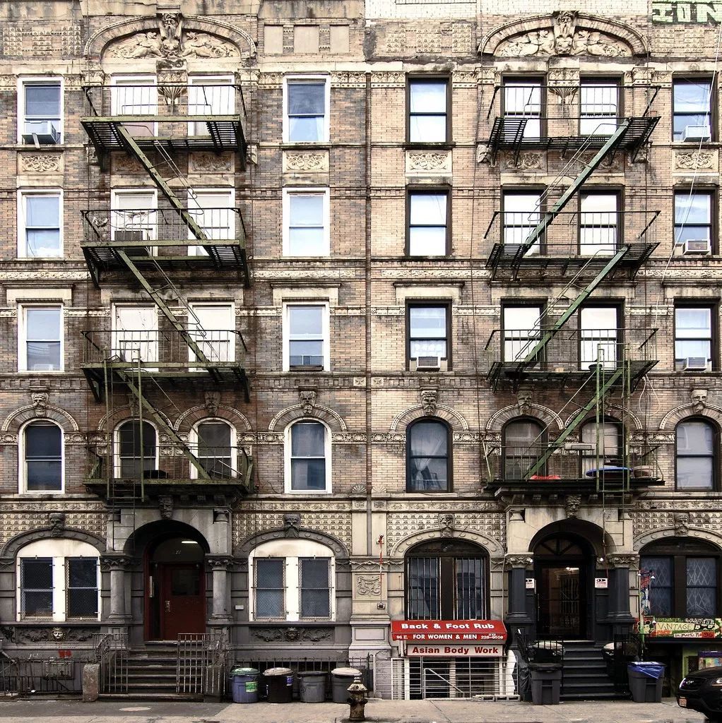 《物质涂鸦》的封面上是一对一模一样的孪生大楼,位于纽约东村的St. Mark's Place 96-98号,是70年代中期纽约常见廉价公寓楼,从它简单的结构与外立面的钢铁迅捷逃生梯便可见一斑,设计者已不可考。