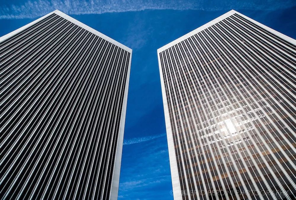 尽管封面上的裸男背影有点抢眼球,不过这张唱片封面上建筑也大有来头。著名的日裔美籍建筑大师山崎实(Minoru Yamazaki)在完成纽约世贸中心的项目之后,于1975年又设计了这对新的双子塔——洛杉矶世纪广场双塔(The Century Plaza Towers)。
