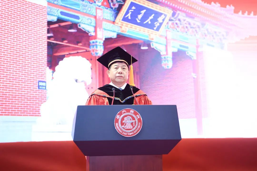 上海交大校长、中国工程院院士林忠钦临别赠言;党委书记杨振斌等校领导为毕业生授予学位;1982届机械工程系本科毕业生,宁德时代首席制造官、工程制造体系及研发体系联席总裁,美国密西根大学吴贤铭制造科学冠名教授及机械工程终身正教授,上海交大校长特聘顾问、密西根学院荣誉院长倪军作主题发言。
