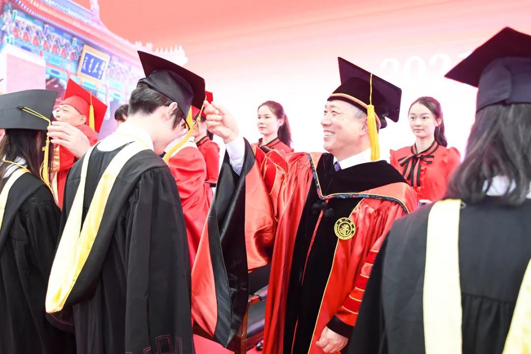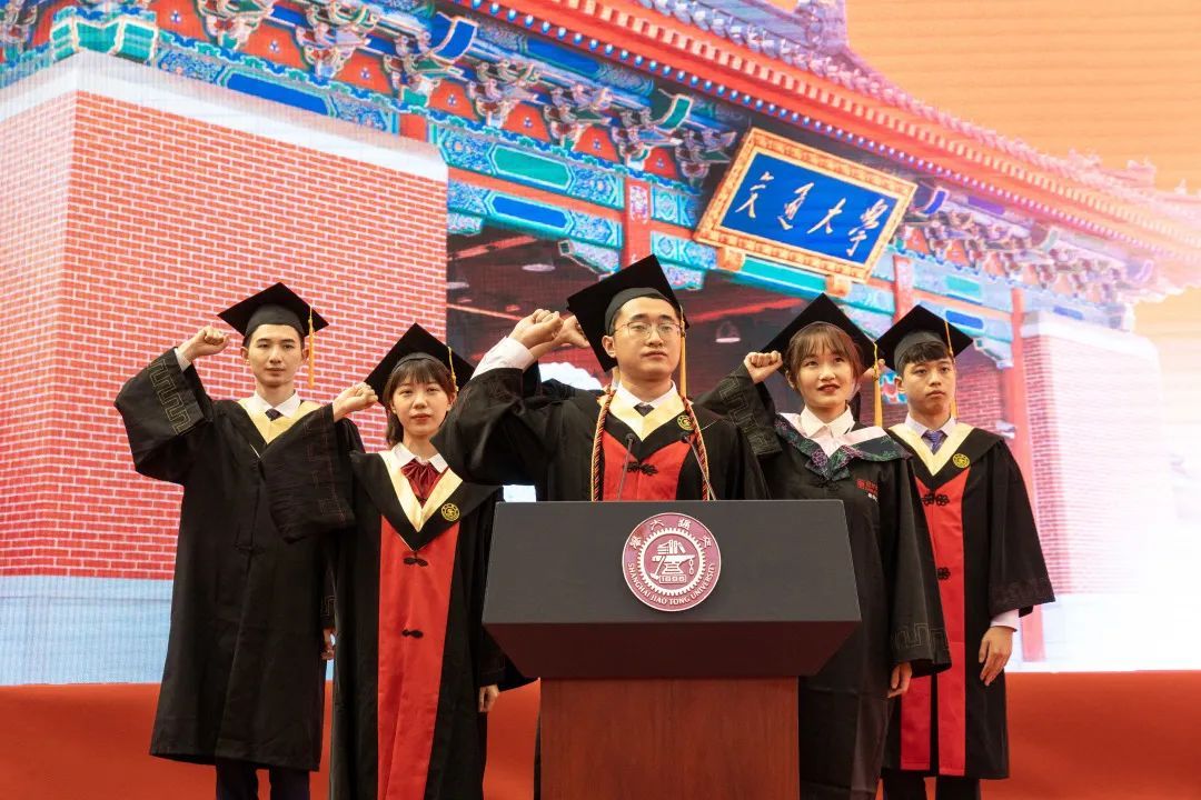 林忠钦校长还与杨振斌书记一道对同学们提三点希望:希望毕业后继续深造的同学,志趣高远,勇攀学术高峰,推动国家创新发展;希望毕业后投身行业的同学,求真务实,积跬步至千里,助力实业兴国伟业;希望毕业后奔赴偏远地区、重点单位的同学能够坚守岗位,在扎根中生长,最终成为国之栋梁。带着交大人的光荣与梦想,胸怀崇高信仰,不懈攀登、勇往直前!