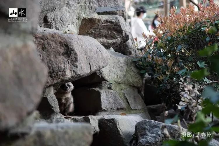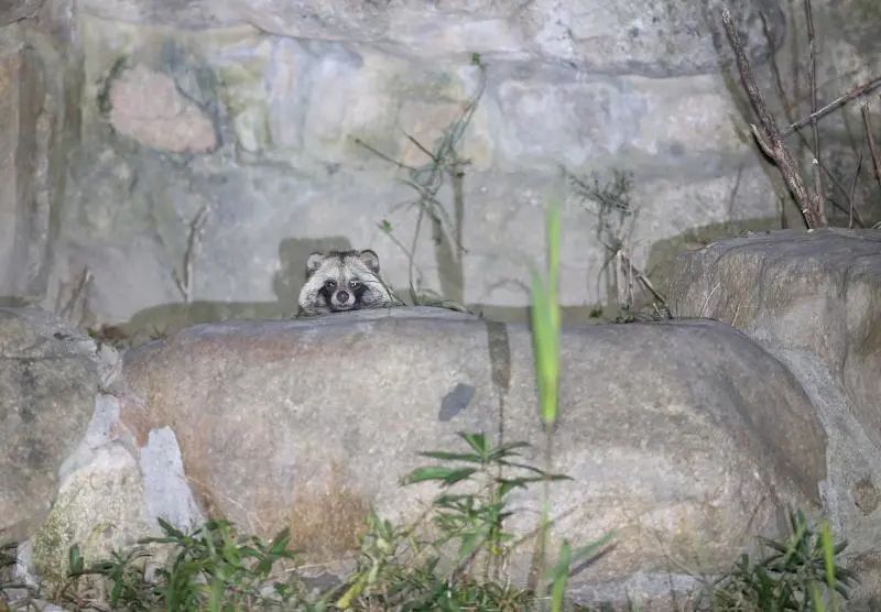 除此之外,假山也是貉入住率最高的地方之一。假山不只有貉最喜欢的现成的空洞,还紧靠水边和绿化带。