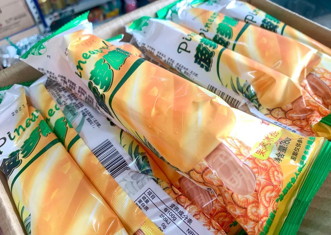 还记得它吗?曾经红极一时的上海冷狗牌菠萝渣渣,螺旋形状的冰棍里面有细碎的菠萝果肉,咬一口含在嘴里,会忍不住用尽全力吮吸果肉,曾卖到4元一支的高价。如今的复刻版,虽然果肉没有小时候的多,但胜在味道不错,价钱也便宜,每支只要8毛哦!