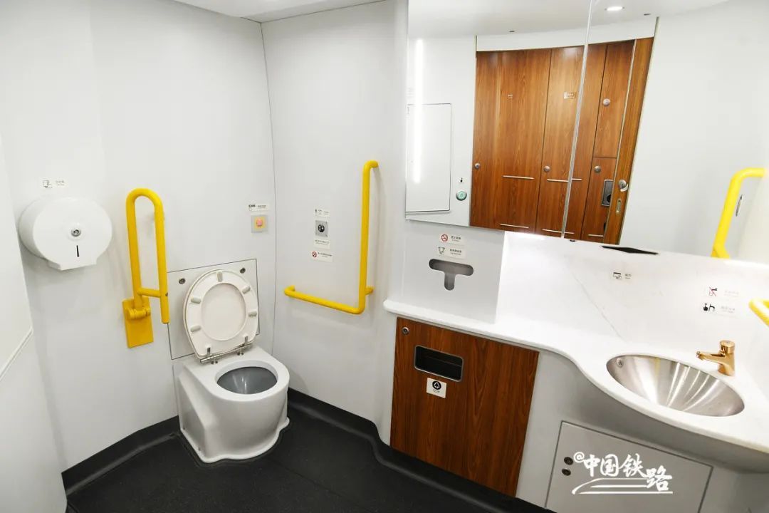 8辆编组列车在4号车厢、17辆编组列车在8号车厢专门设置无障碍车厢,配备更宽阔的通过门、无障碍卫生间、轮椅放置区等,在服务设施上增加盲文标识,更好地服务残疾人旅客出行。