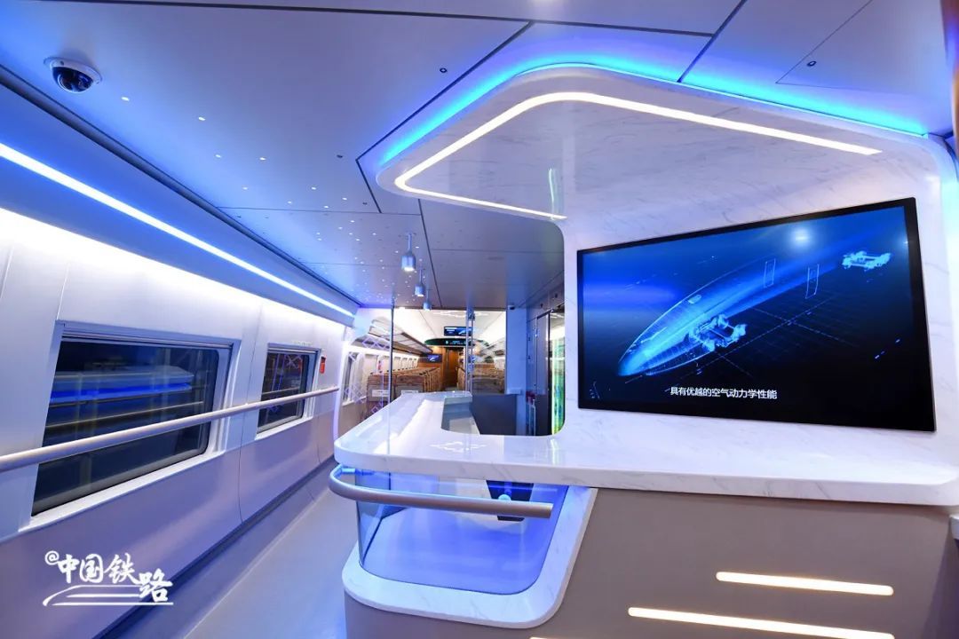 17辆编组列车采用基于5G技术的列车WIFI,为旅客提供更优质的语音通话和移动网络服务。对列车的空调机组采用变频技术,温度调节更准确,噪音更小,车厢更安静,不仅使旅客的体感更舒适,而且可降低能耗10%