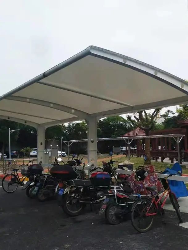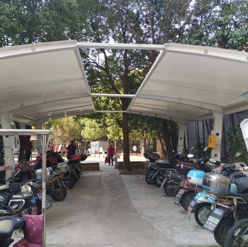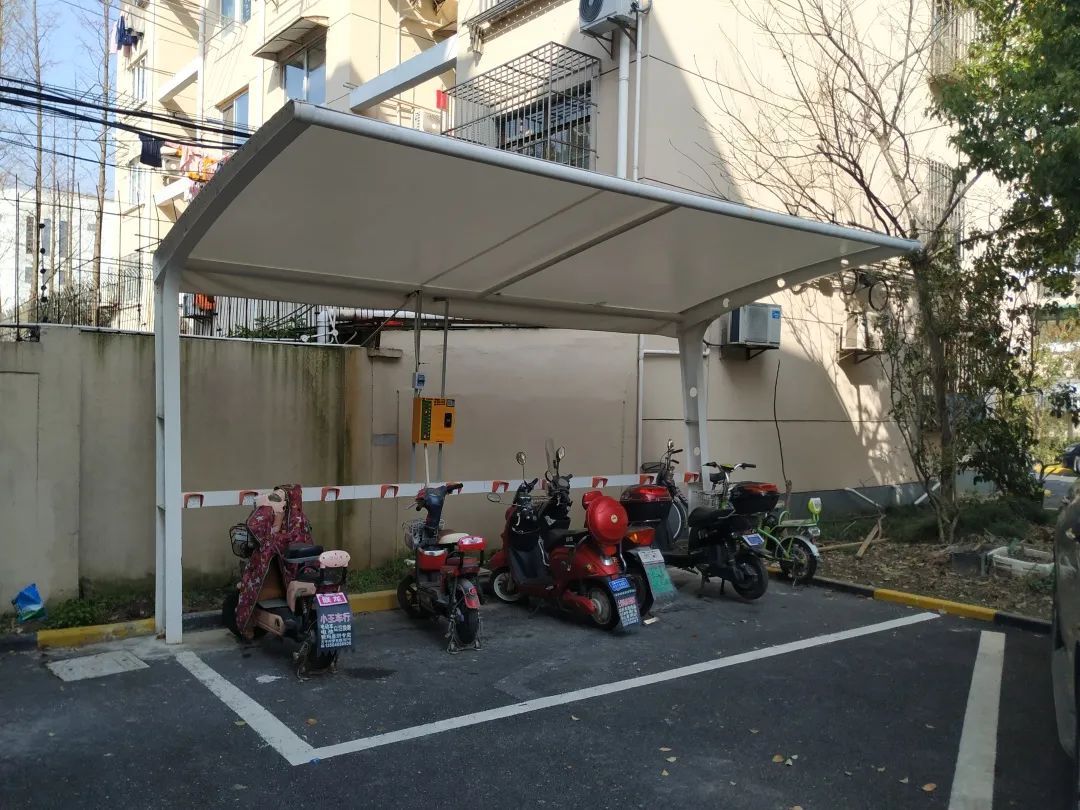 新增的14个户外简易车棚,分散在小区内,为电瓶车充电和自行车停放提供了便利,缓解了楼道电瓶车充电、非机动车乱停放等现象,消除安全隐患。