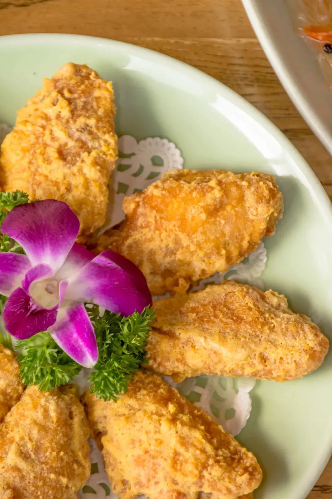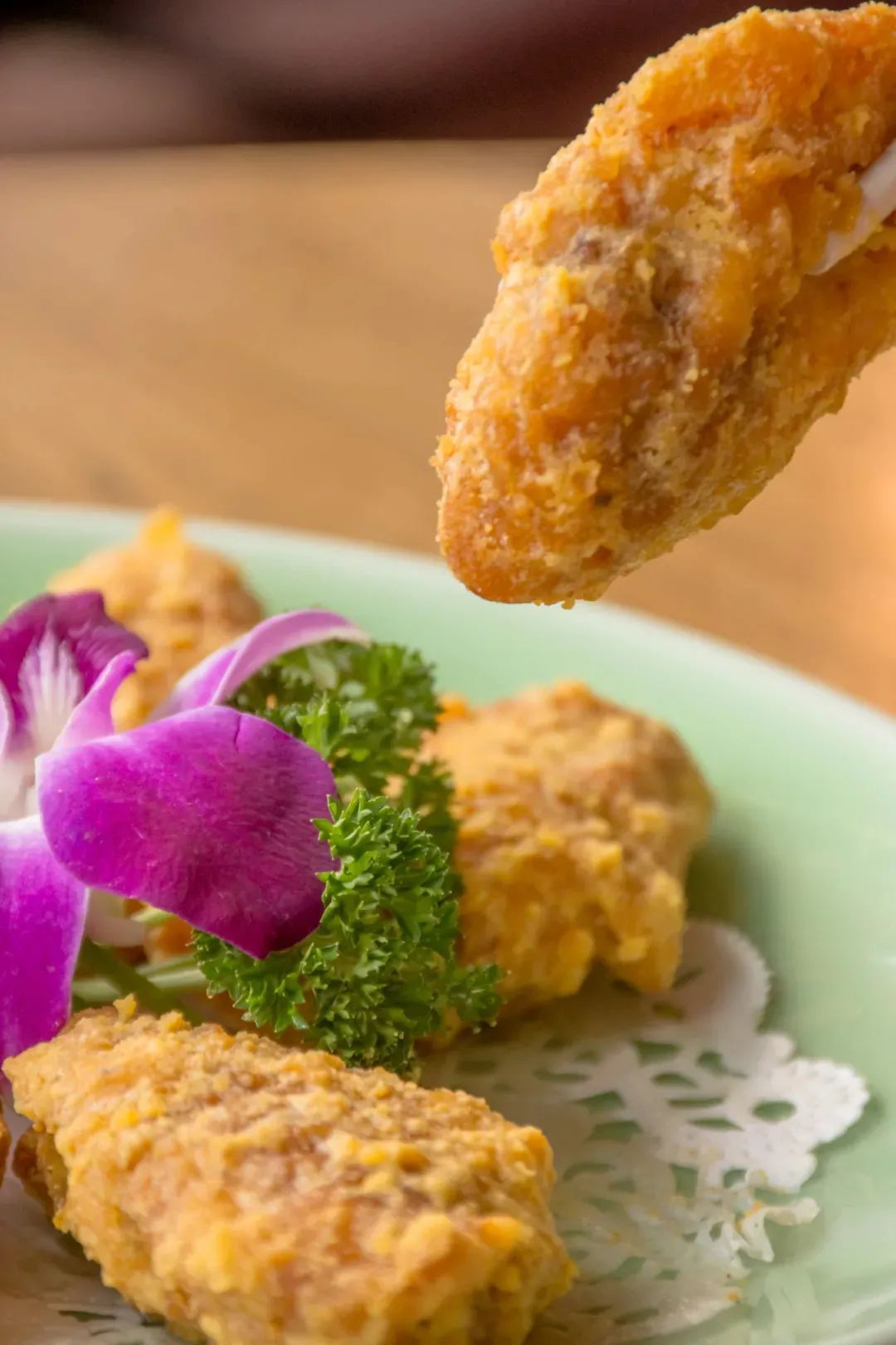一盘蛋黄鸡翅上桌,咸蛋黄在淀粉的加持下,牢牢包覆鸡翅。外皮酥脆,内里却是鲜嫩多汁,鸡翅大小划一、形状饱满、色泽金黄、浓香四溢,不禁让人食欲大增。