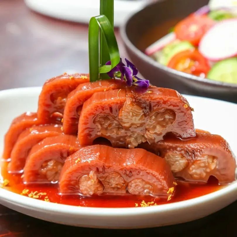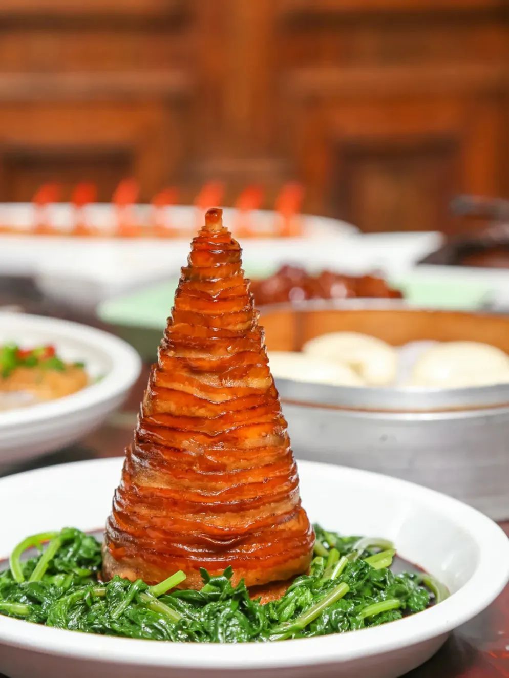 新白鹿耗时一年之久才研发出的这道西湖宝塔肉,一定要尝一尝。真的是汇聚了厨师团队的心血,形似杭州名胜:保俶塔,内里还藏着超入味的笋干。