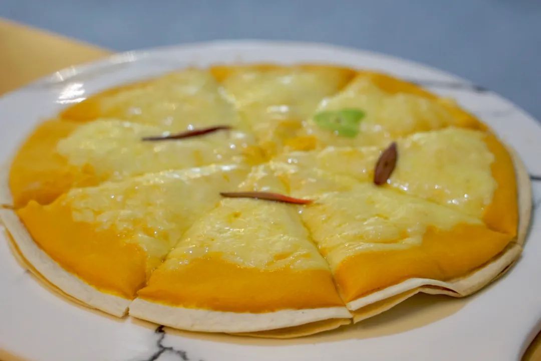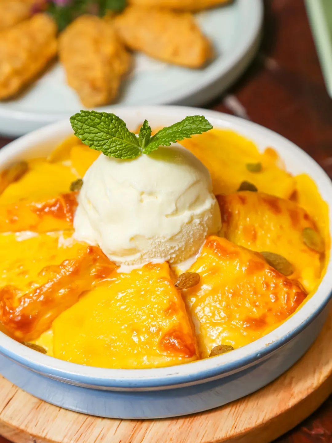 厚厚的南瓜泥量很足,入口非常绵密,在马苏里拉芝士的加持下,拉出长长的丝儿,为甜食爱好者带来一整天的快乐。