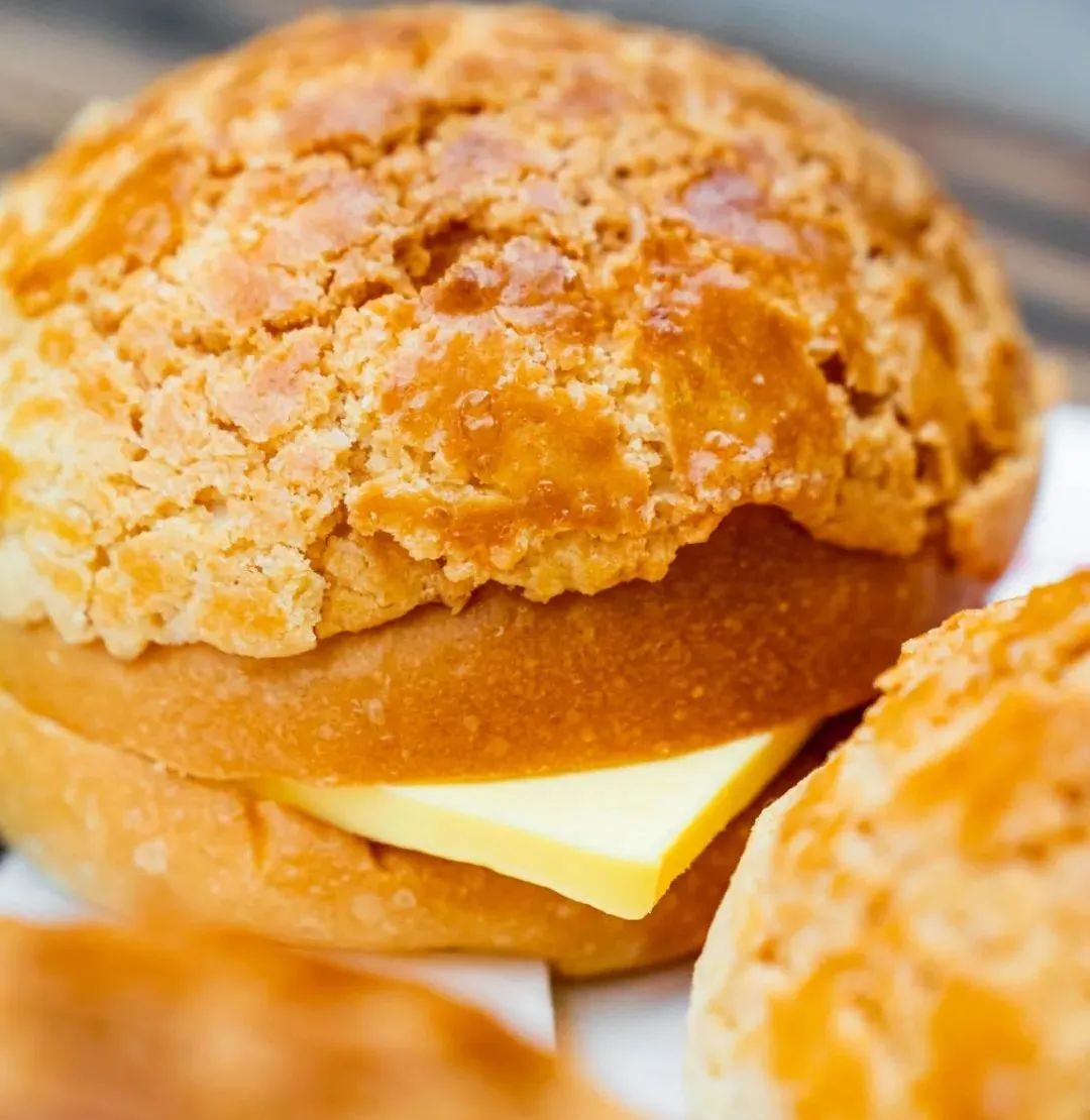 鲜油菠萝包是招牌,抚慰了无数人的心。顶上的酥皮分出了多层,早已烘烤到了酥化,轻轻一拿就瓦解。脆皮版的菠萝包也很好吃哦。