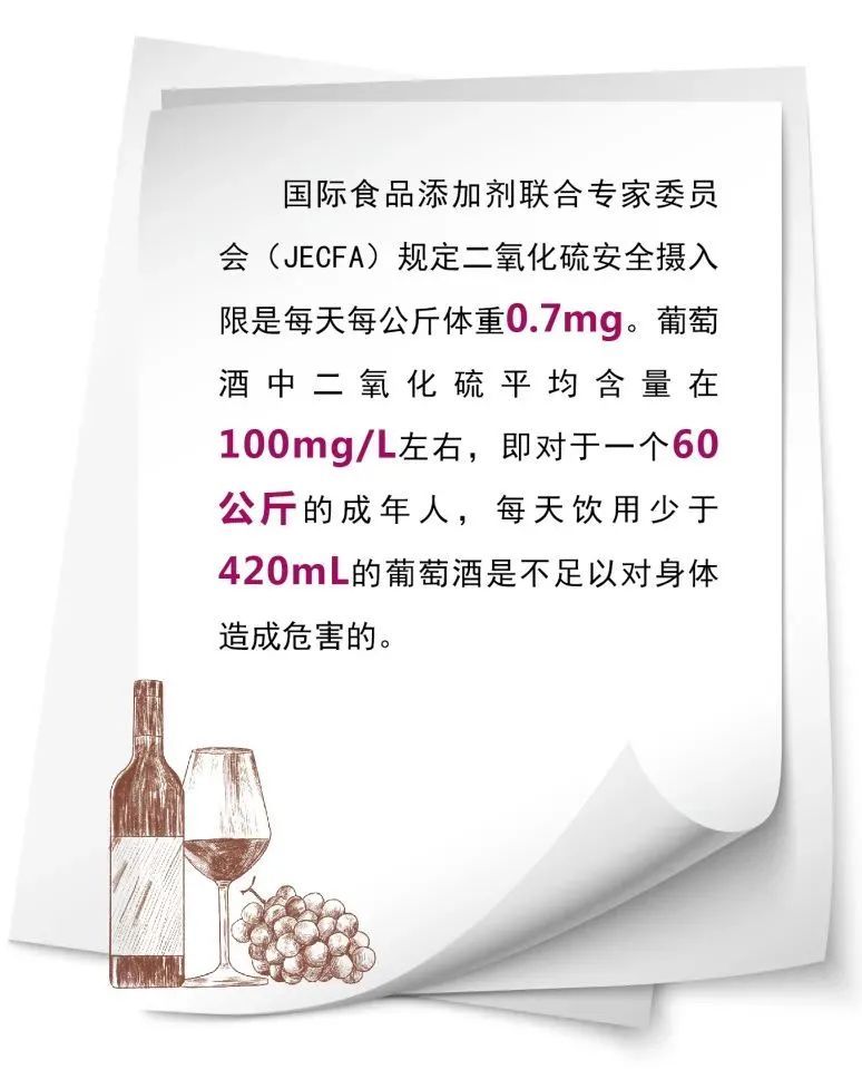 很多消费者认为二氧化硫是个“坏东西”,质疑在葡萄酒中添加二氧化硫的必要性,担心葡萄酒中的二氧化硫会对人体造成伤害,其实大可不必。二氧化硫在葡萄酒中主要是起到抗氧化的作用,以保护葡萄汁中新鲜的果香和鲜亮的颜色,减少葡萄酒中白藜芦醇和花青素等有益成分的氧化损失。