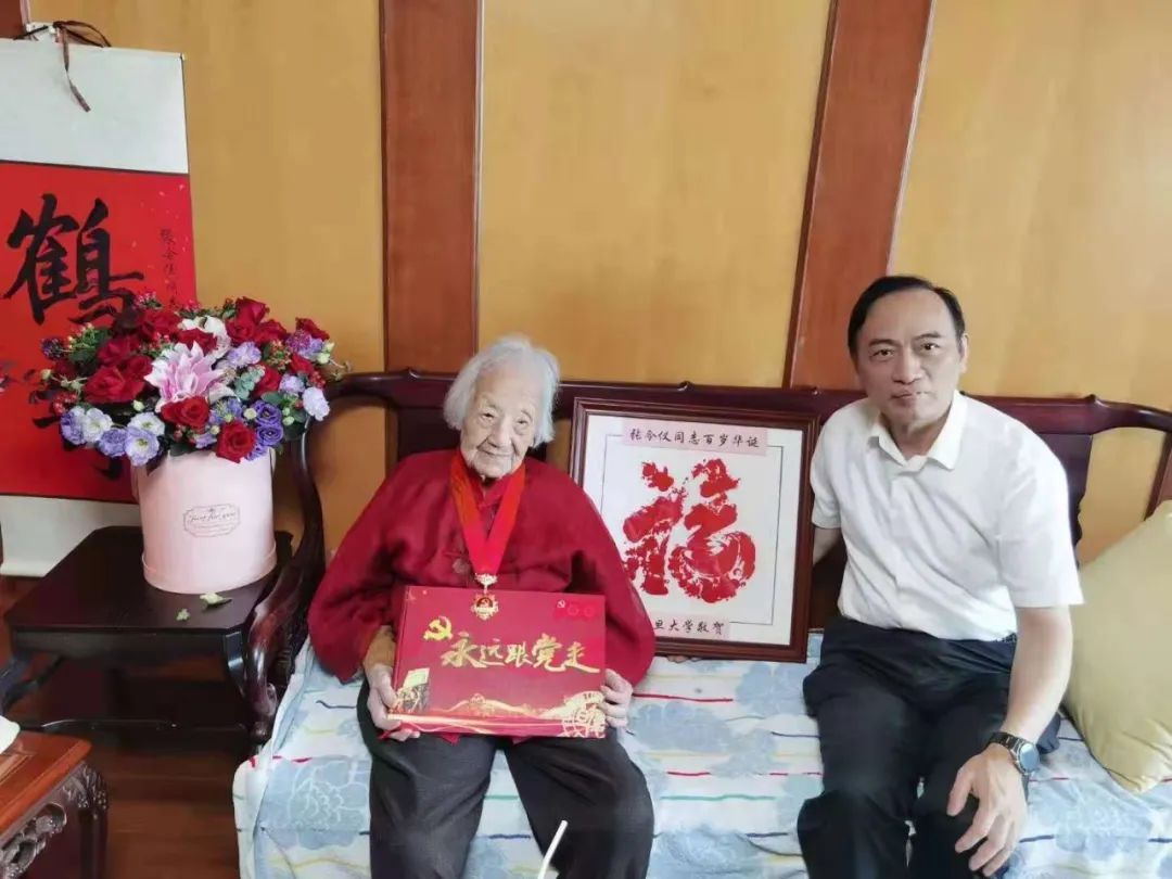 袁正宏慰问党的同龄人、学校离休干部张令仪。张令仪党龄83年,是全校党龄最长的党员。