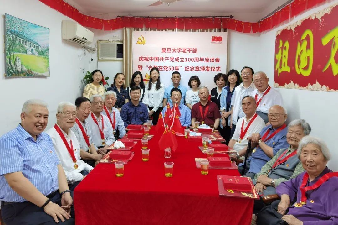 在庆祝中国共产党成立100周年之际,为了从政治上激励、精神上鼓舞广大党员、进一步增强党员的荣誉感、归属感、使命感,党中央决定首次向党龄达到50周年、一贯表现良好的党员颁发“光荣在党50年”纪念章。据统计,复旦大学共有806名党员获得该纪念章。