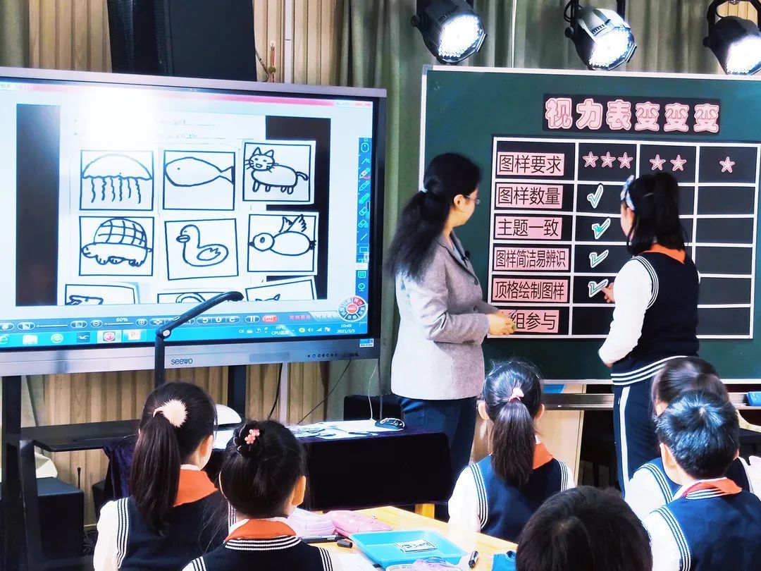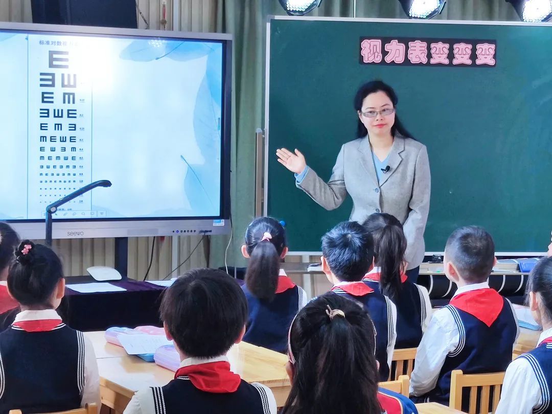 几年来,开鲁新村第二小学通过生动活泼的近视防控实践行动,各项活动满意度调查显示,100%的学生们喜爱跨学科综合实践活动,83%的学生能联系生活实际发现护眼问题,创造性地解决保健手法不正、习惯养成不良等问题。同时,学生视力健康也稳中有降。根据每学期两次的视力监测数据调查显示,学校三到五年学生2019年第二学期视力不良率为58.24%,2020年第一学期视力不良率为56.35%。这也说明了近视防控的工作有所成效。