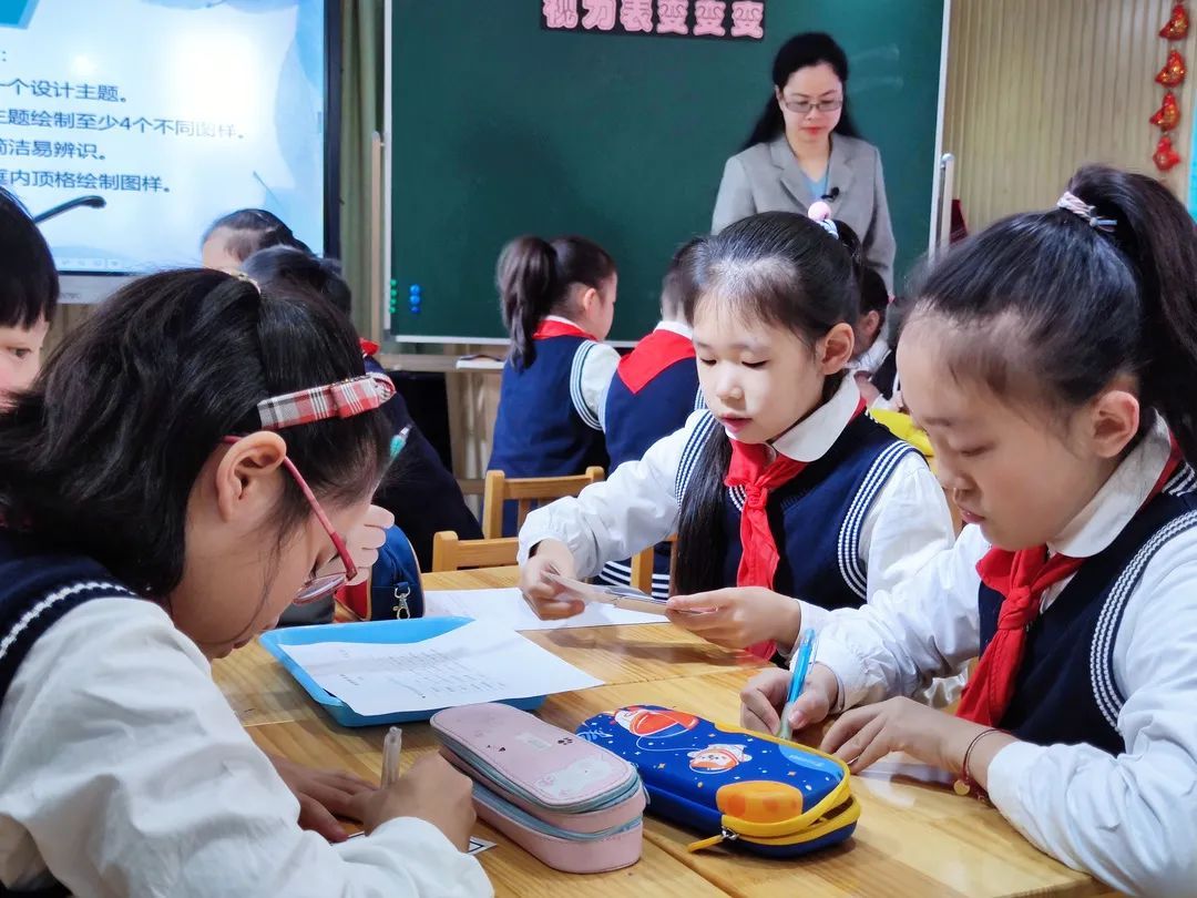 跨学科领域学习是当下学校课程变革的时代走向,但教师跨学科设计和实施能力相对缺乏,因此就需要一个“样本”供老师们体验、学习、模仿和创造。于是,开鲁新村第二小学又与同济大学艺术学院合作研发了《为眼睛而设计》STEM文创活动,充分运用科学、数学、美术、艺术、语文等知识,通过工程设计和技术工具,从认识视力、意识培养、自主发现问题、创造性的提出解决策略、认知视力等五个方面,开展“演绎警示语、创编舞动操、设计正姿服、自创视力表、探秘眼穴位、故事创编”等六个主题内容的STEM文创活动内容,来解决视力保护的实际问题,培养学生合作探究、想象创造、艺术表达能力。