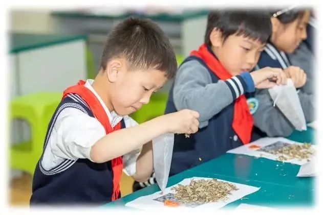 跨学科综合实践活动通过名医典故、养眼知识等内容,分成“遨游世界、探秘自然、品味四季、玩转阴阳、创造和谐、舞动身心”六个主题开展实施,融合语文、数学、科技、体育、美术等学科元素,架起故事绘读、实验探究、艺术创想、游戏活动等四个活动模块,实现做学玩合一、思创行一体。如让学生们通过小组合作,运用绘画、设计、表演等形式,创作护眼表情包;知道“还元明目汤”的药方,根据药方运用不同的形式抓药;让学生知道眼部穴位,并了解穴位的功能等。