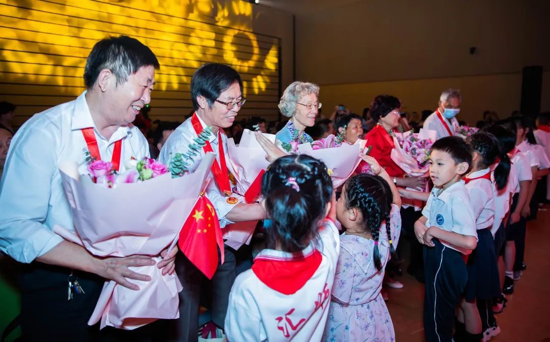 虹梅小学生代表为近20名老党员现场献花,表达崇敬之情。