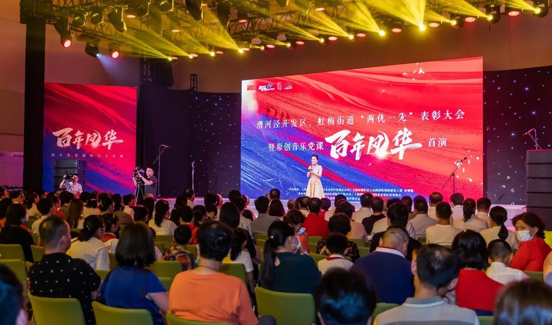 7月2日晚,漕河泾开发区、虹梅街道“两优一先”表彰大会暨原创音乐党课《百年风华》首演,在漕河泾总部园A7报告厅举行。