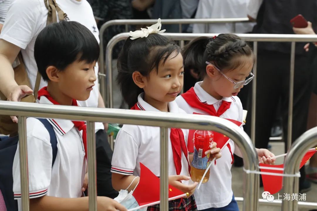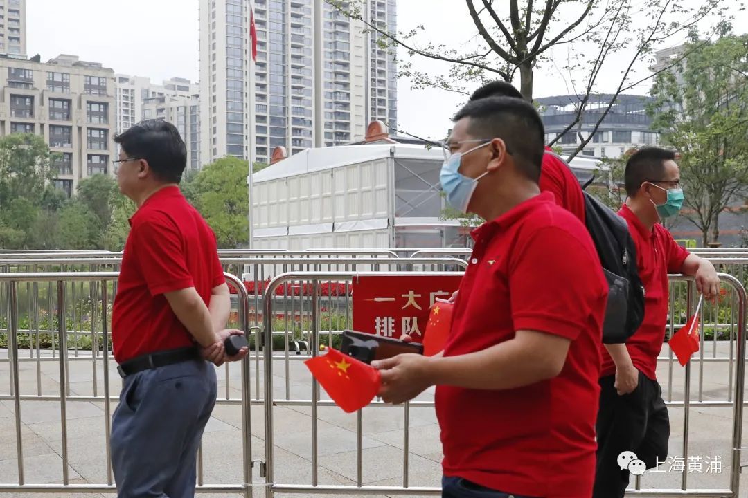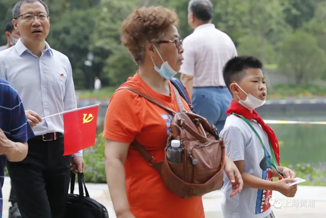他们有的摇着小国旗、有的穿着庆祝建党百年的定制上衣。
