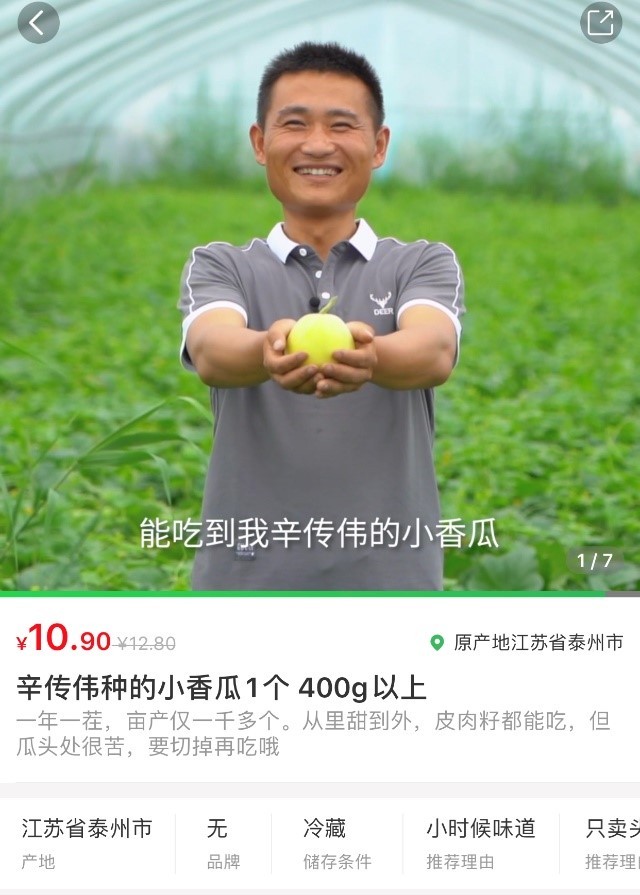叮咚买菜研究院院长申强告诉记者,辛传伟的白玉小香瓜,是叮咚买菜推出的“农人匠心”系列产品之一,“农人匠心”就是网罗全国各地深藏在民间、或者只在当地非常有名气的农产品,给他们一个面向大众的平台,帮助他们找销路、树立品牌。此前这个系列还成功推出了黄庆华的沃柑、卜崇兴的伊莉莎红番茄等。