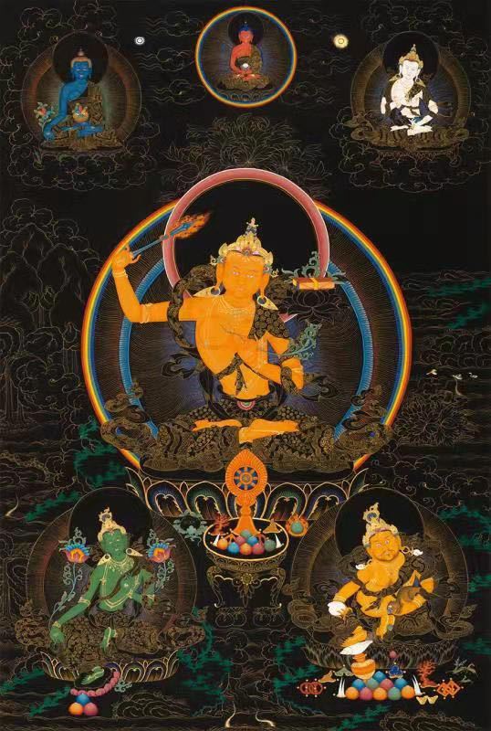 展览由六大板块组成,分别为佛部、菩萨部、财神、佛母、金刚护法、唐卡工艺品及上师。现场展出的93幅作品涵盖了5种目前活跃于西藏唐卡画坛的绘画流派——勉唐派、齐吾冈派、嘎玛嘎赤派、萨迦寺风格和夏鲁风格。