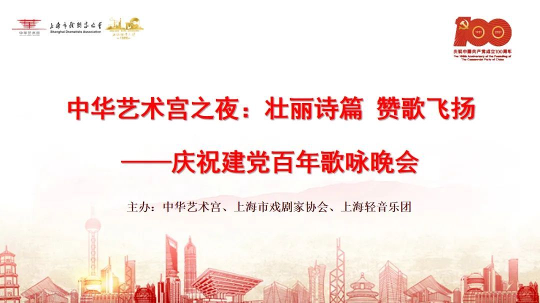 为庆祝中国共产党成立100周年,热情讴歌党,丰富我馆公益活动的形式与内容,吸引更多的观众走进中华艺术宫,我馆将与上海市戏剧家协会、上海轻音乐团共同举办《中华艺术宫之夜:壮丽诗篇 赞歌飞扬——庆祝建党百年歌咏晚会》。本次晚会分为朗诵与声乐表演两大部分,并结合我馆“日出东方——上海市庆祝中国共产党成立100周年美术作品展”作品,通过优秀绘画创作与音乐、诗歌之间的文化关联深情诠释党的光辉历史百年奋斗历程,见证党的丰功伟绩与伟大成就。